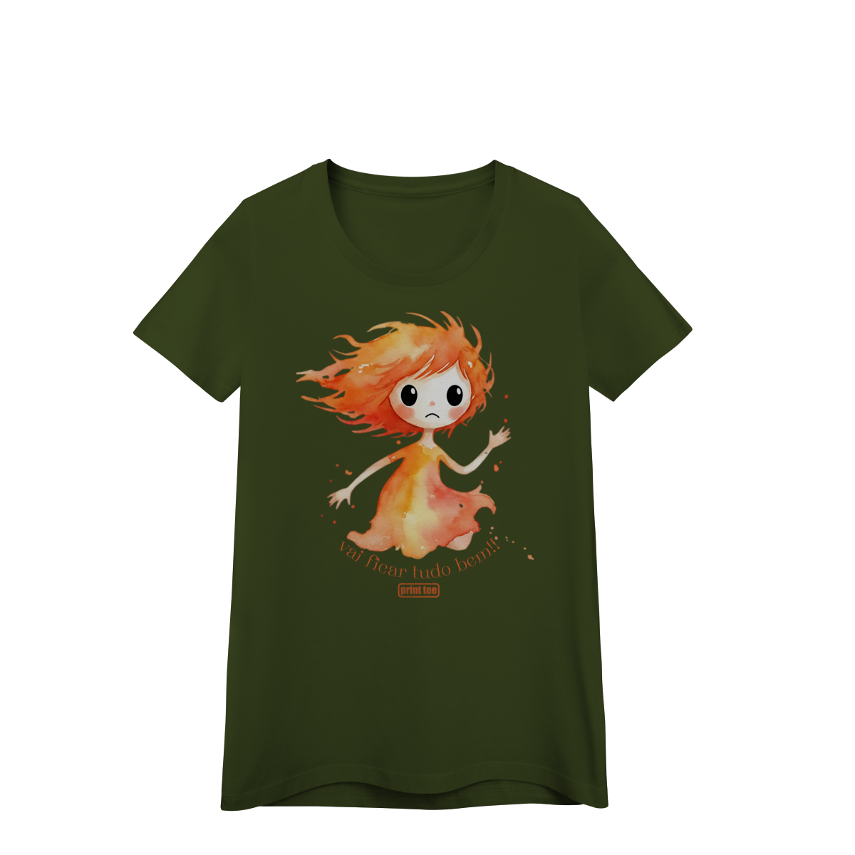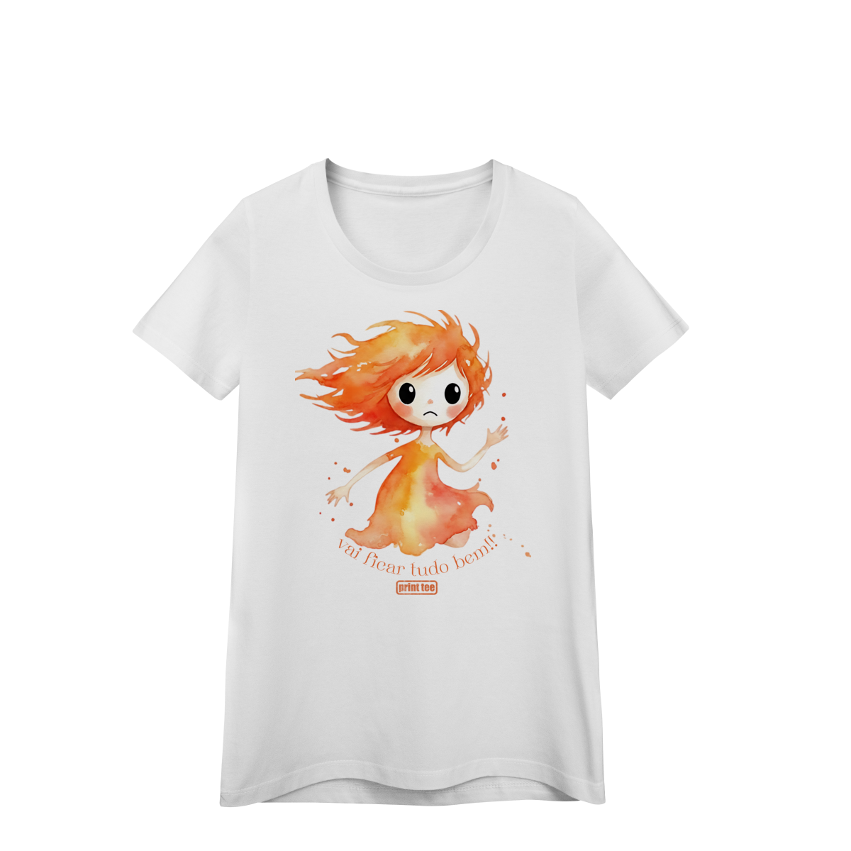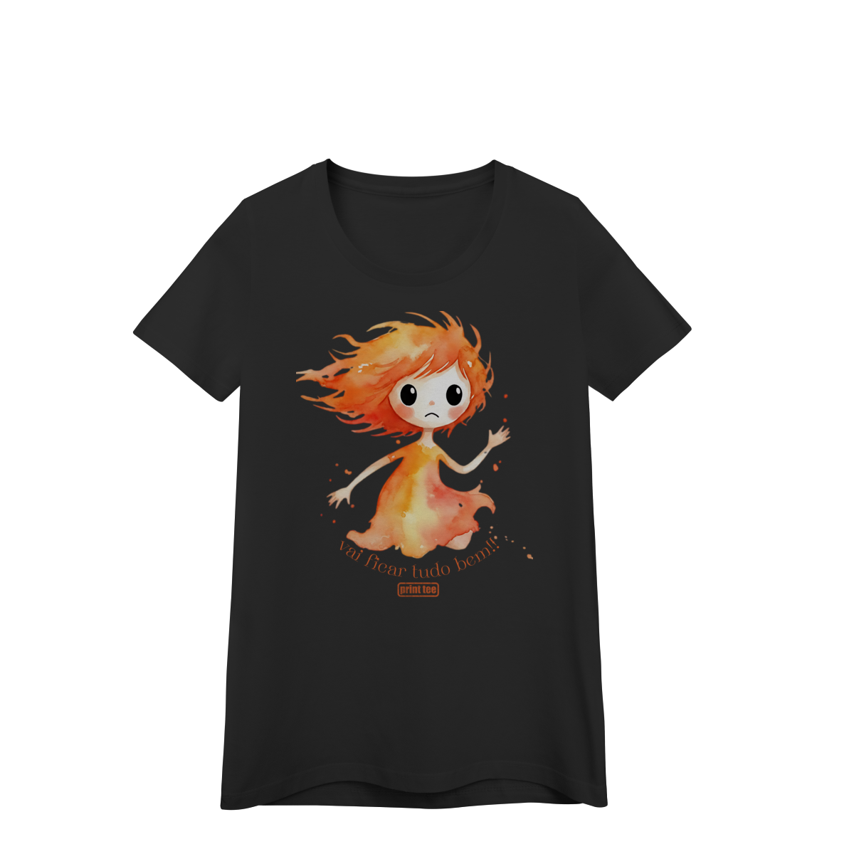 O design traz a frase "vai ficar tudo bem!!" como um abraço em forma de palavras, servindo como um lembrete visual de que, mesmo quando as chamas internas parecem descontroladas, existe um centro de calma tentando se reencontrar. É a representação perfeita para quem entende que sentir demais é, ao mesmo tempo, um desafio e uma forma de luz.