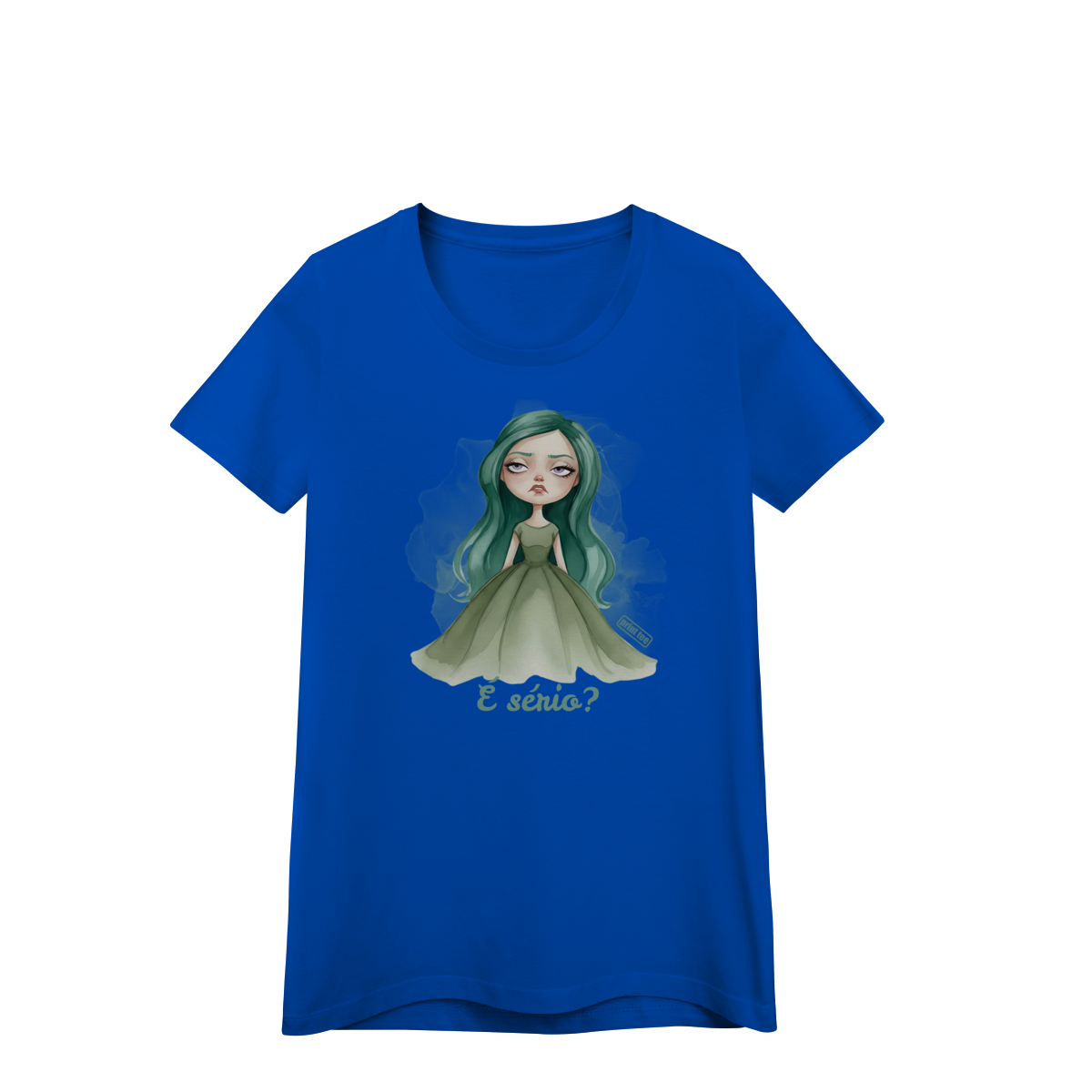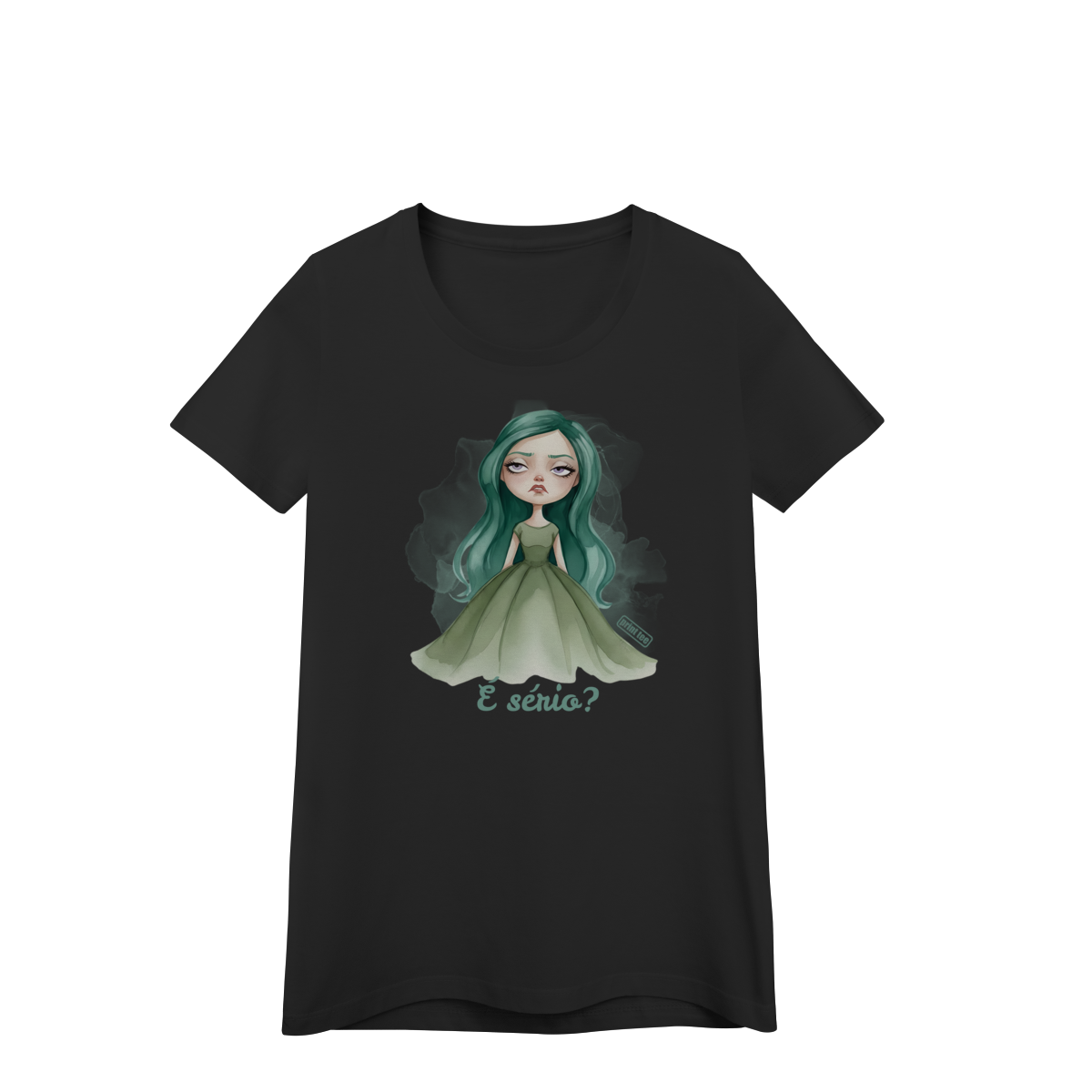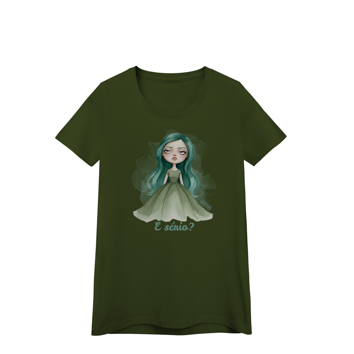 Esta t-shirt traz uma ilustração exclusiva de uma personagem com estética dark whimsical — longos cabelos esmeralda, um vestido clássico e um olhar que atravessa a alma de quem ousa dizer algo óbvio. O tom verde militar da peça complementa a paleta fria da arte, resultando em um visual moderno e autêntico.