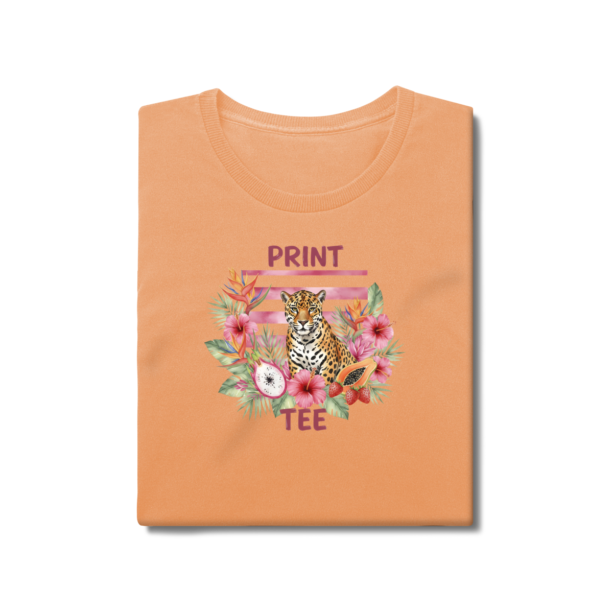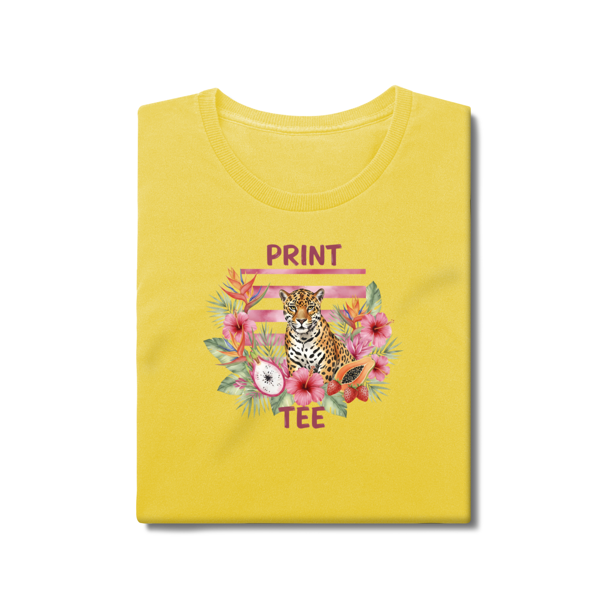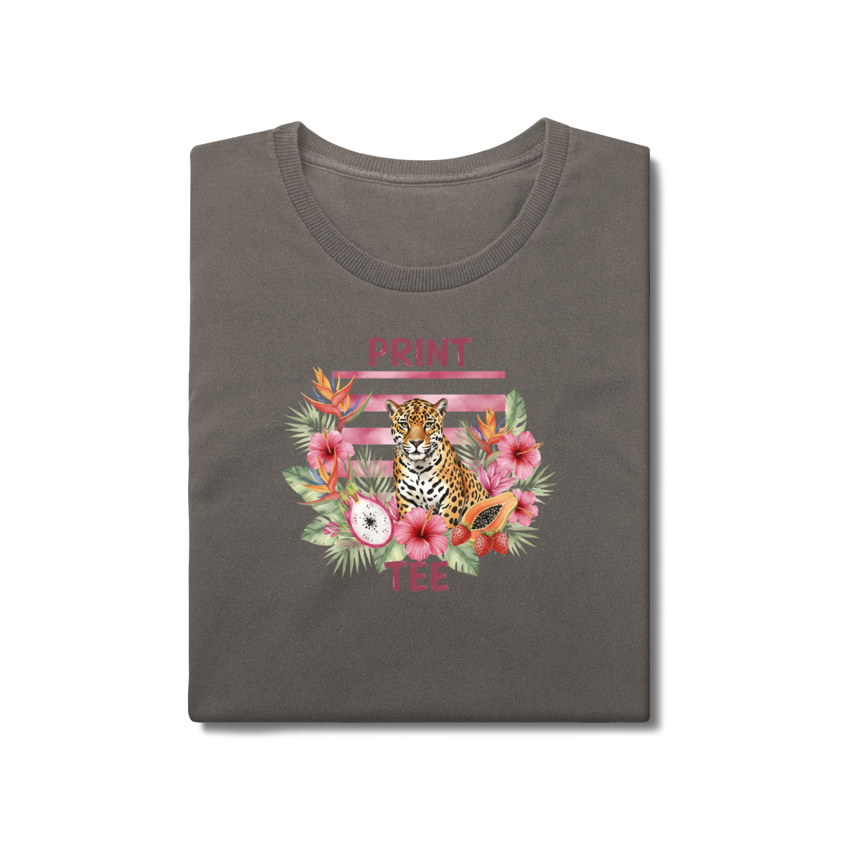 Sinta a energia da fauna brasileira com a nossa nova estampa exclusiva da Print Tee. Unindo a imponência da onça-pintada a um arranjo vibrante de flores tropicais, hibiscos e pitayas, esta peça é a definição de estilo autêntico e moderno.
