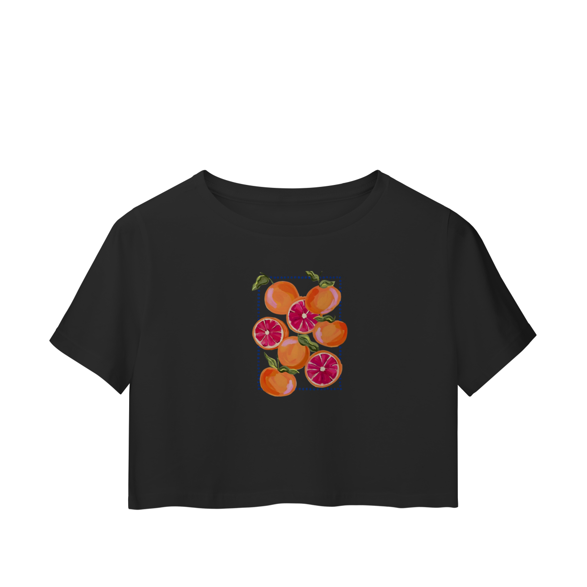 Dê um toque de frescor mediterrâneo ao seu guarda-roupa com a nossa Baby Tee Citrus Garden. Com uma modelagem crop ajustada e moderna, esta peça apresenta uma estampa exclusiva de laranjas e toranjas em estilo pintura à mão. O contraste do branco com os tons vibrantes de laranja e rosa cria o visual perfeito para dias ensolarados.