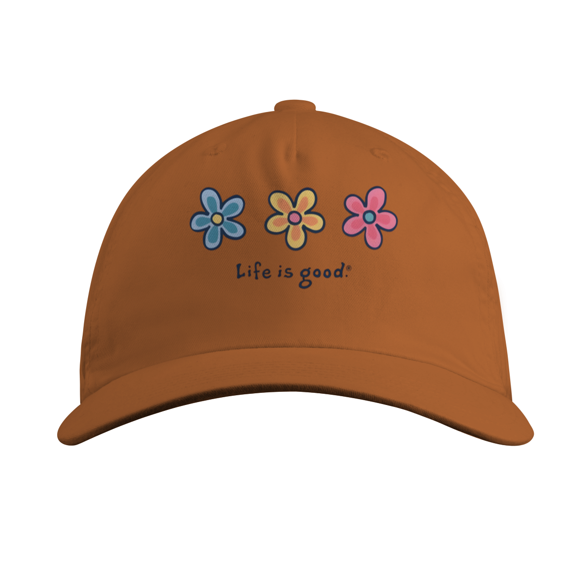 Descrição: Traga a energia do pôr do sol para o seu visual diário. Este boné na cor terracota vibrante combina o conforto do design clássico com uma mensagem que define o seu dia: "Life is Good".
