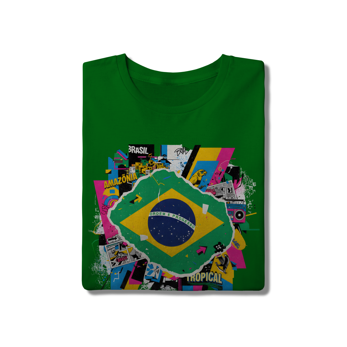 Mostre ao mundo sua paixão tropical com a Camiseta "Brasil Pulsação Tropical".