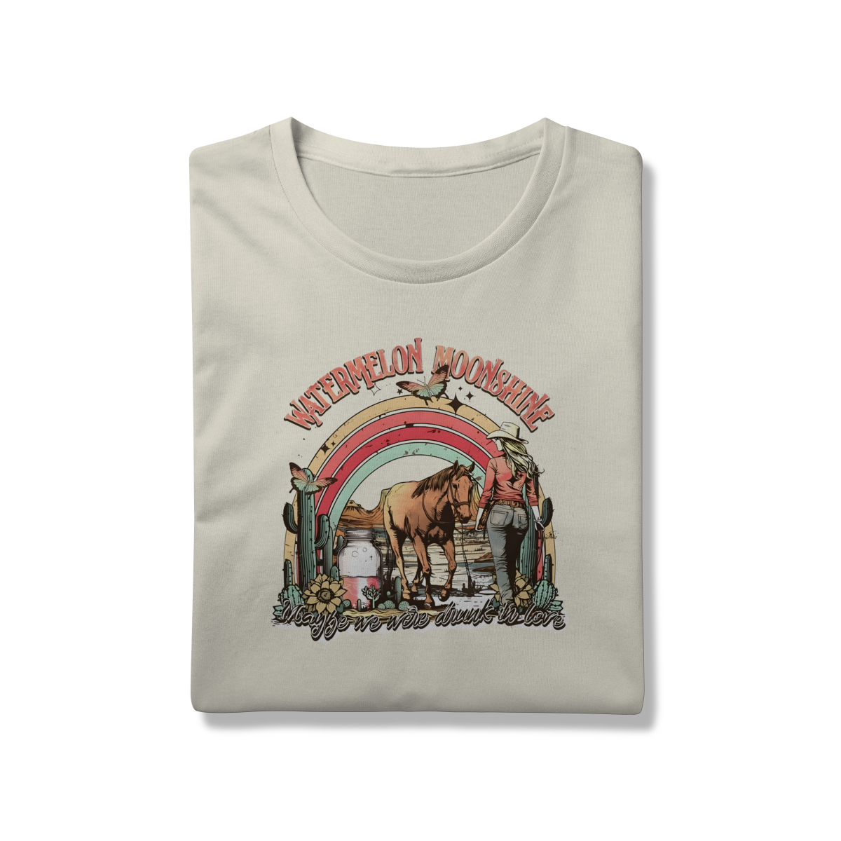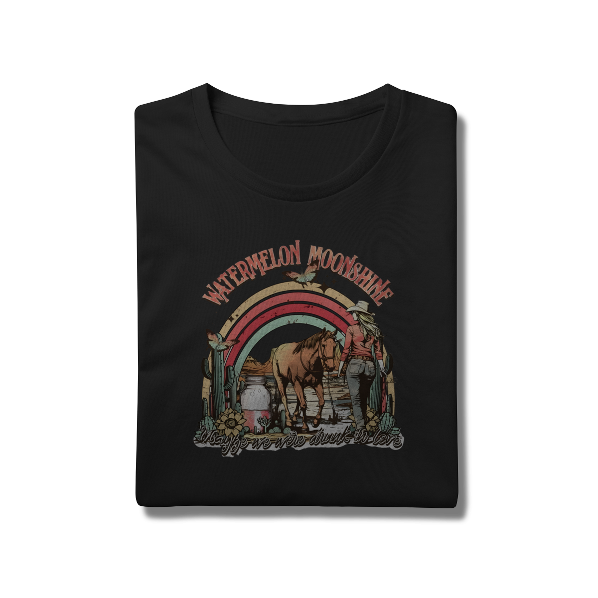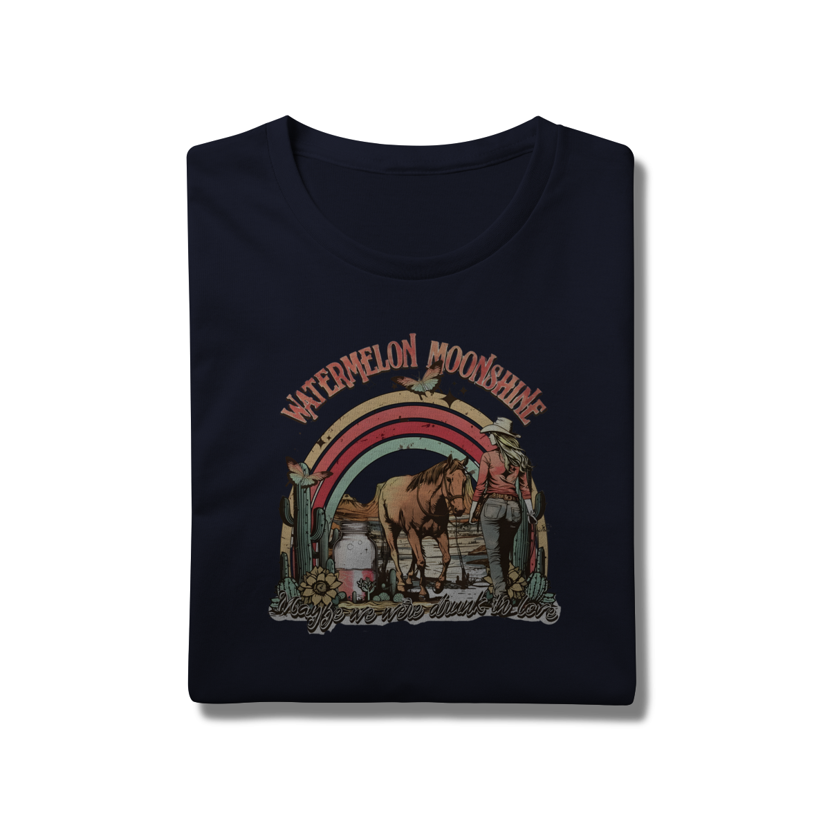 Entre no clima country vintage com a nossa camiseta exclusiva "Watermelon Moonshine"! Inspirada no charme do oeste e na nostalgia retrô, esta peça é perfeita para quem ama música, cavalos e um estilo de vida livre e autêntico.