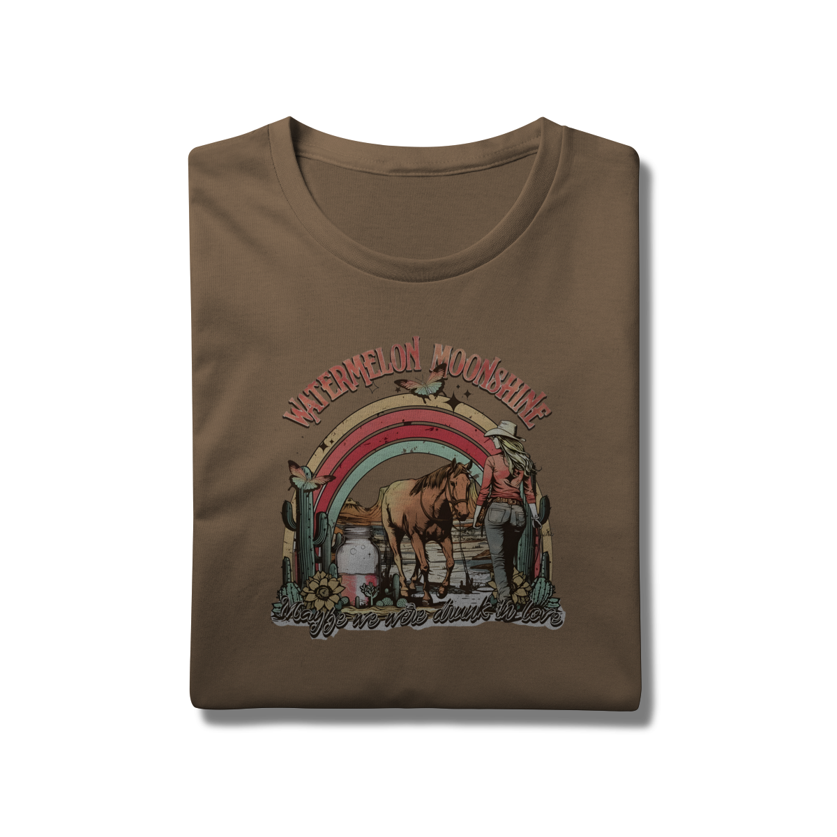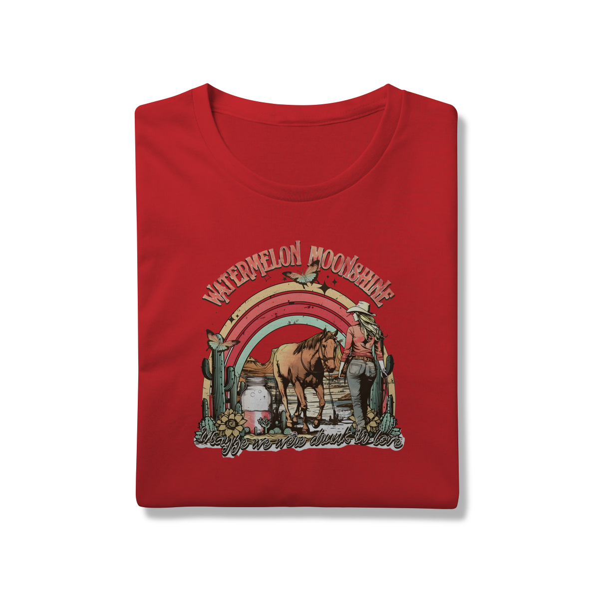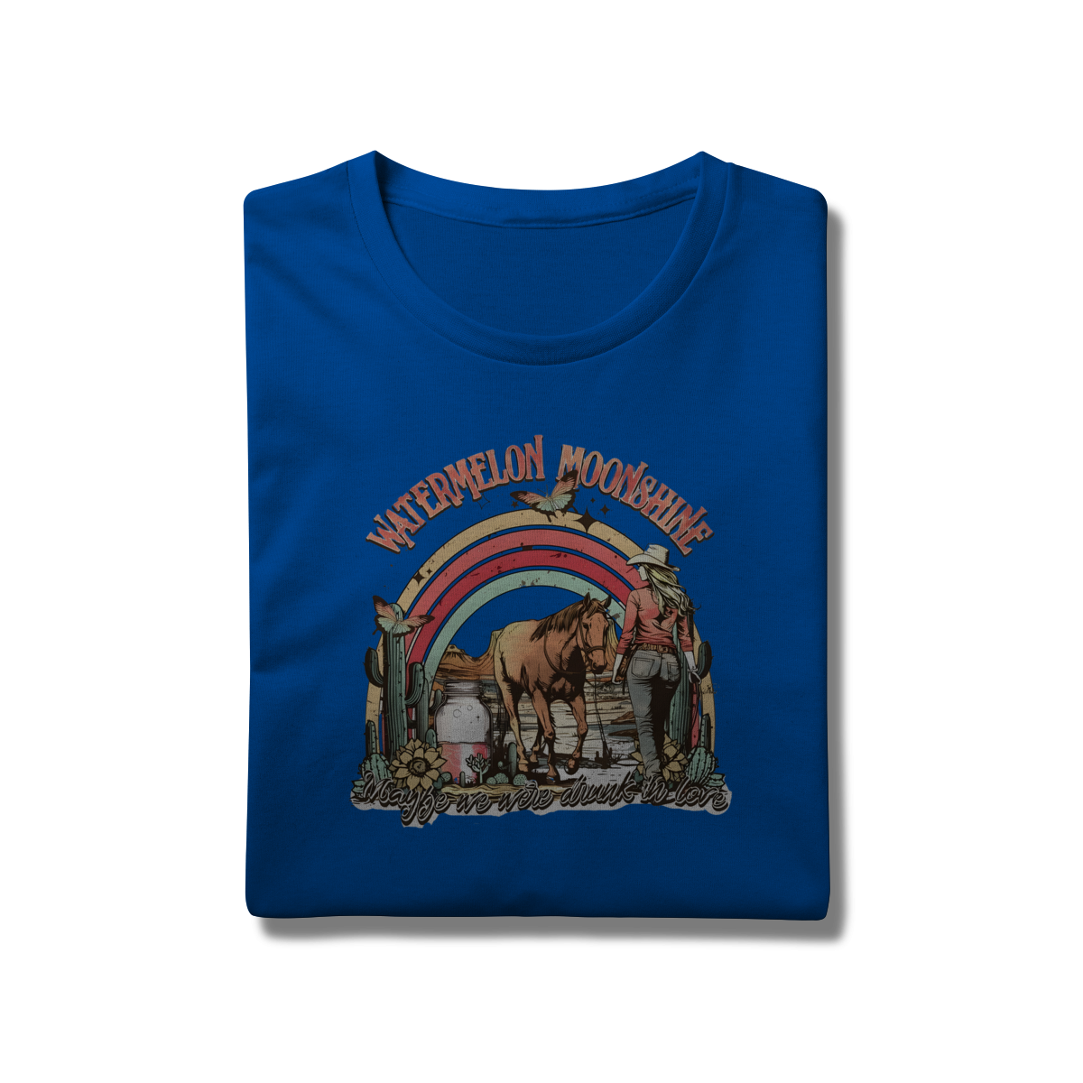 Entre no clima country vintage com a nossa camiseta exclusiva "Watermelon Moonshine"! Inspirada no charme do oeste e na nostalgia retrô, esta peça é perfeita para quem ama música, cavalos e um estilo de vida livre e autêntico.