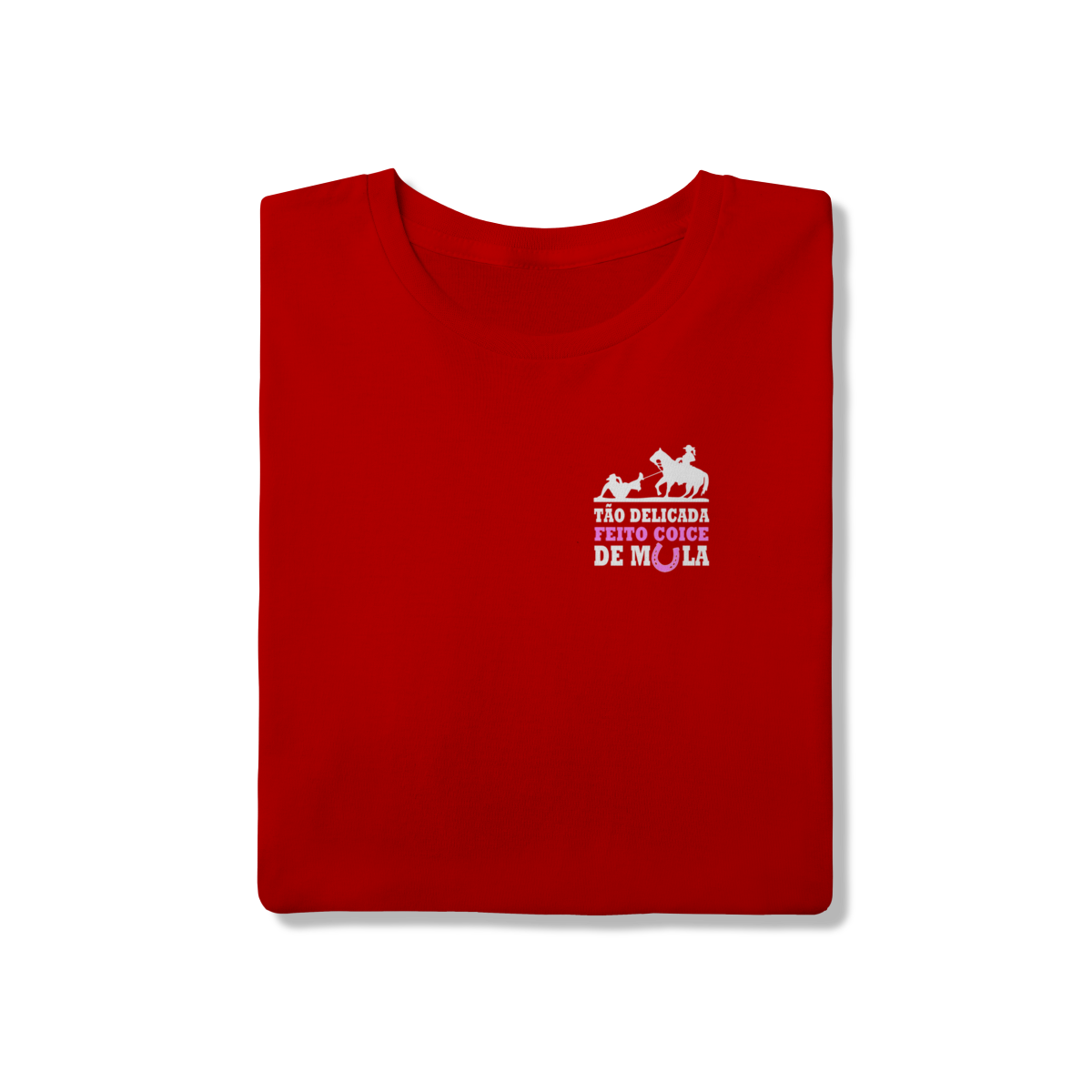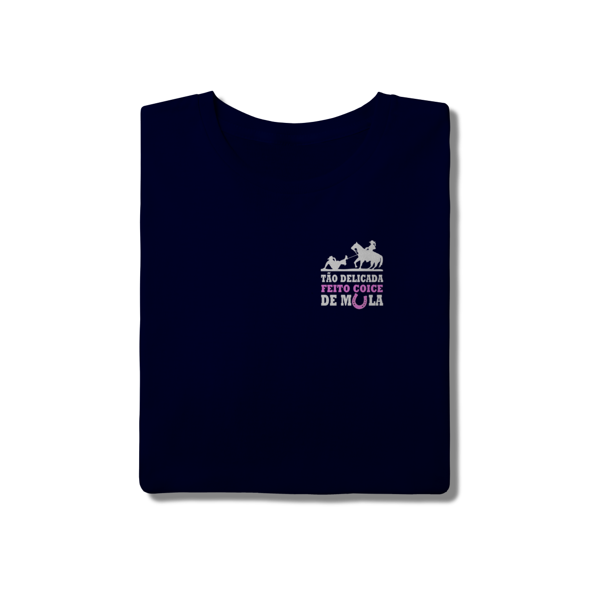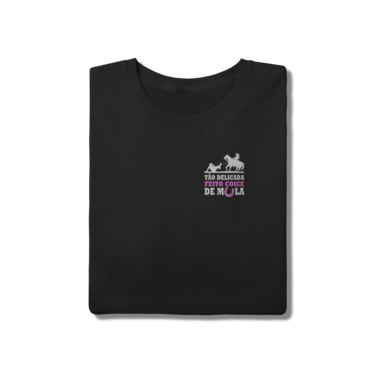 Se você é daquelas que é feminina, mas não leva desaforo para casa, essa camiseta é o seu novo uniforme de atitude. O bordado discreto no peito, com o contraste do cavaleiro e a ferradura, celebra a mulher do campo, forte, que sabe se impor.