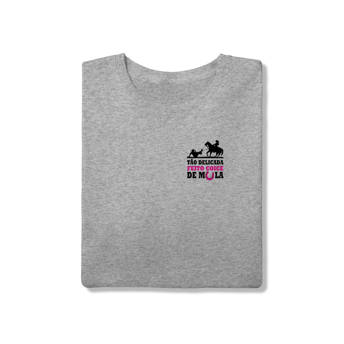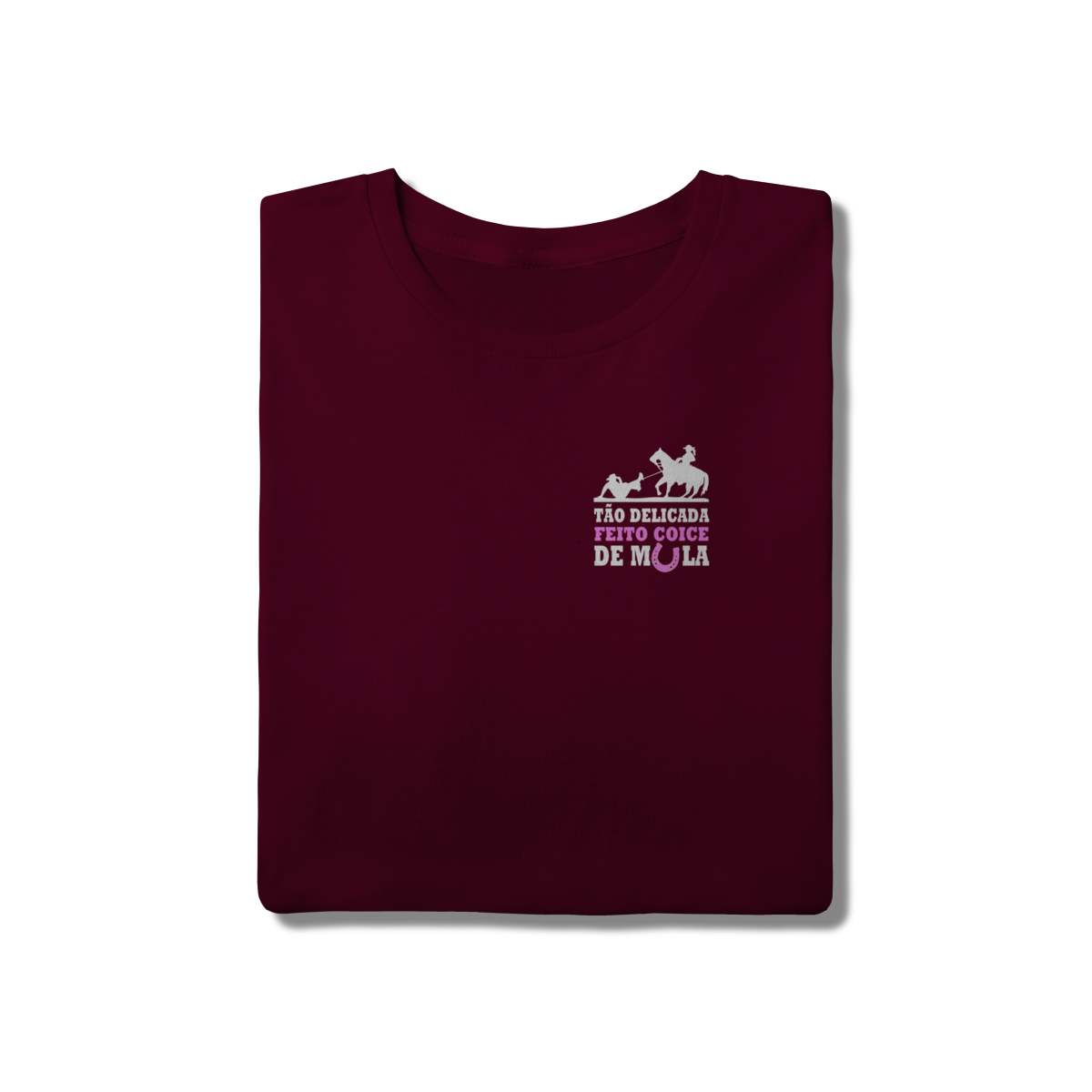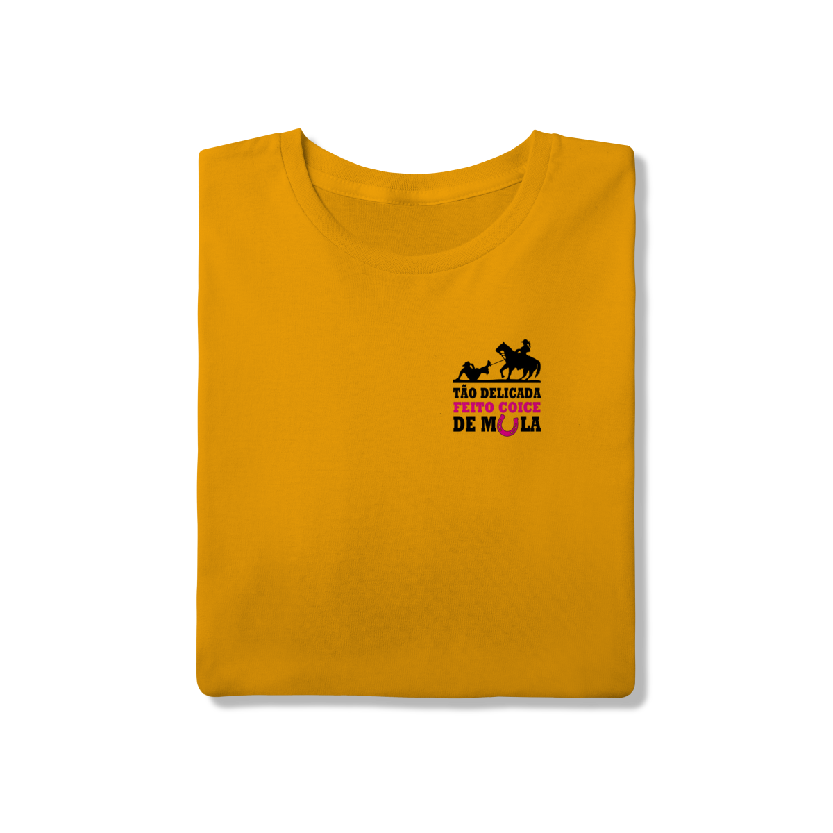 Se você é daquelas que é feminina, mas não leva desaforo para casa, essa camiseta é o seu novo uniforme de atitude. O bordado discreto no peito, com o contraste do cavaleiro e a ferradura, celebra a mulher do campo, forte, que sabe se impor.