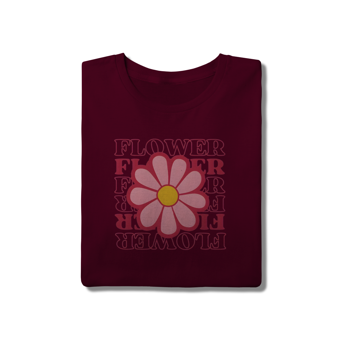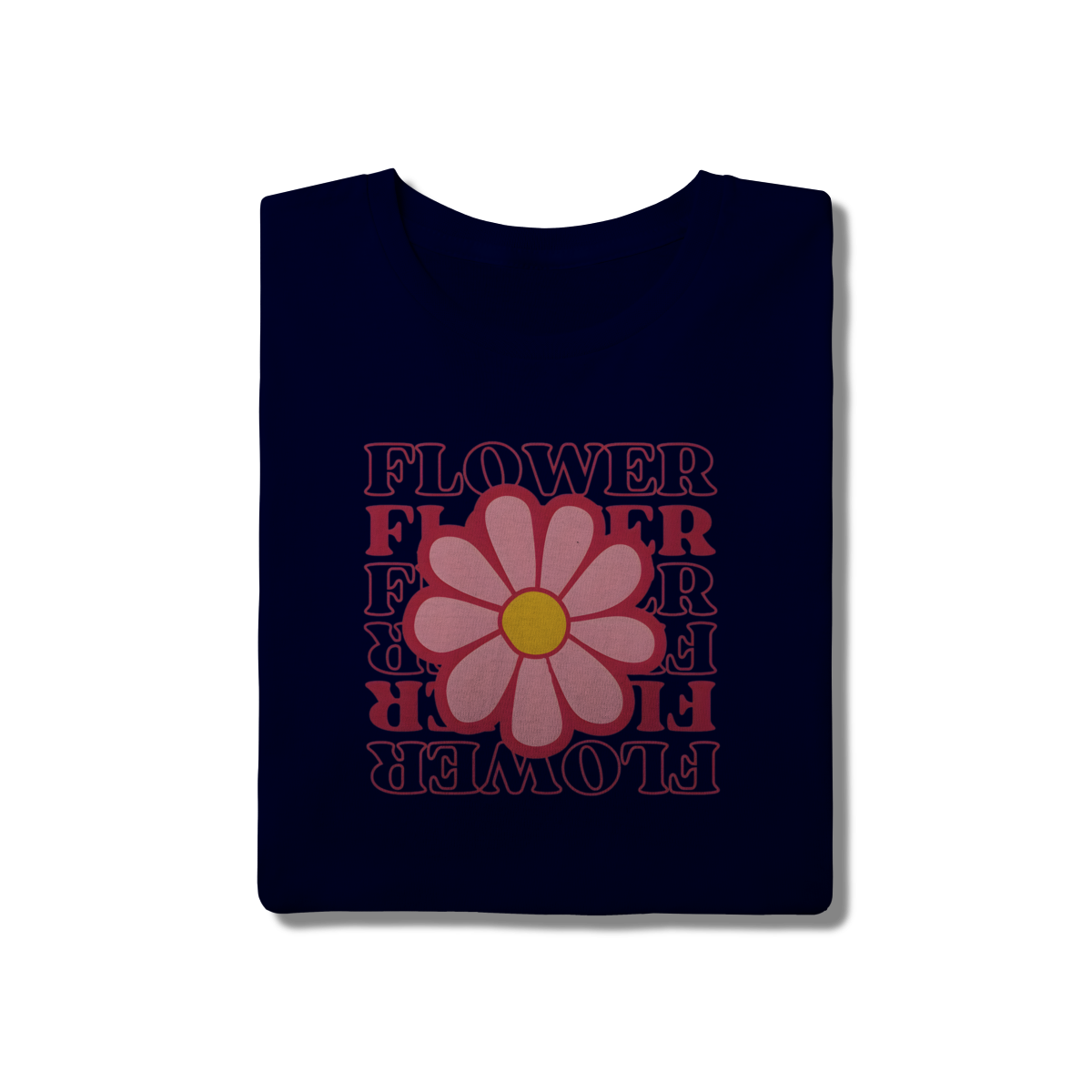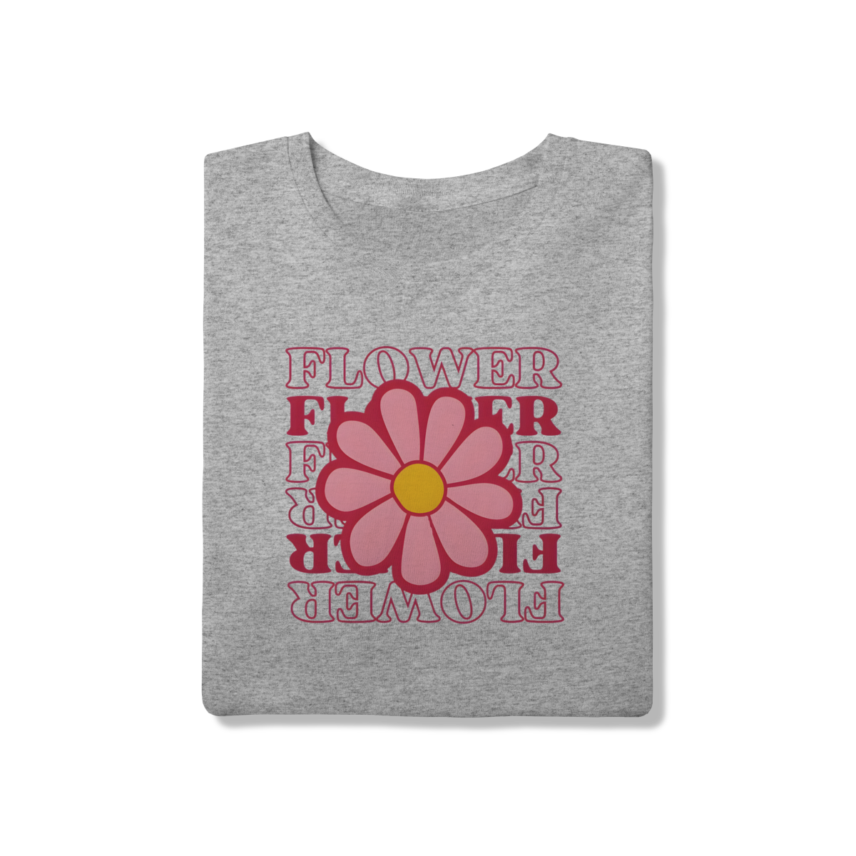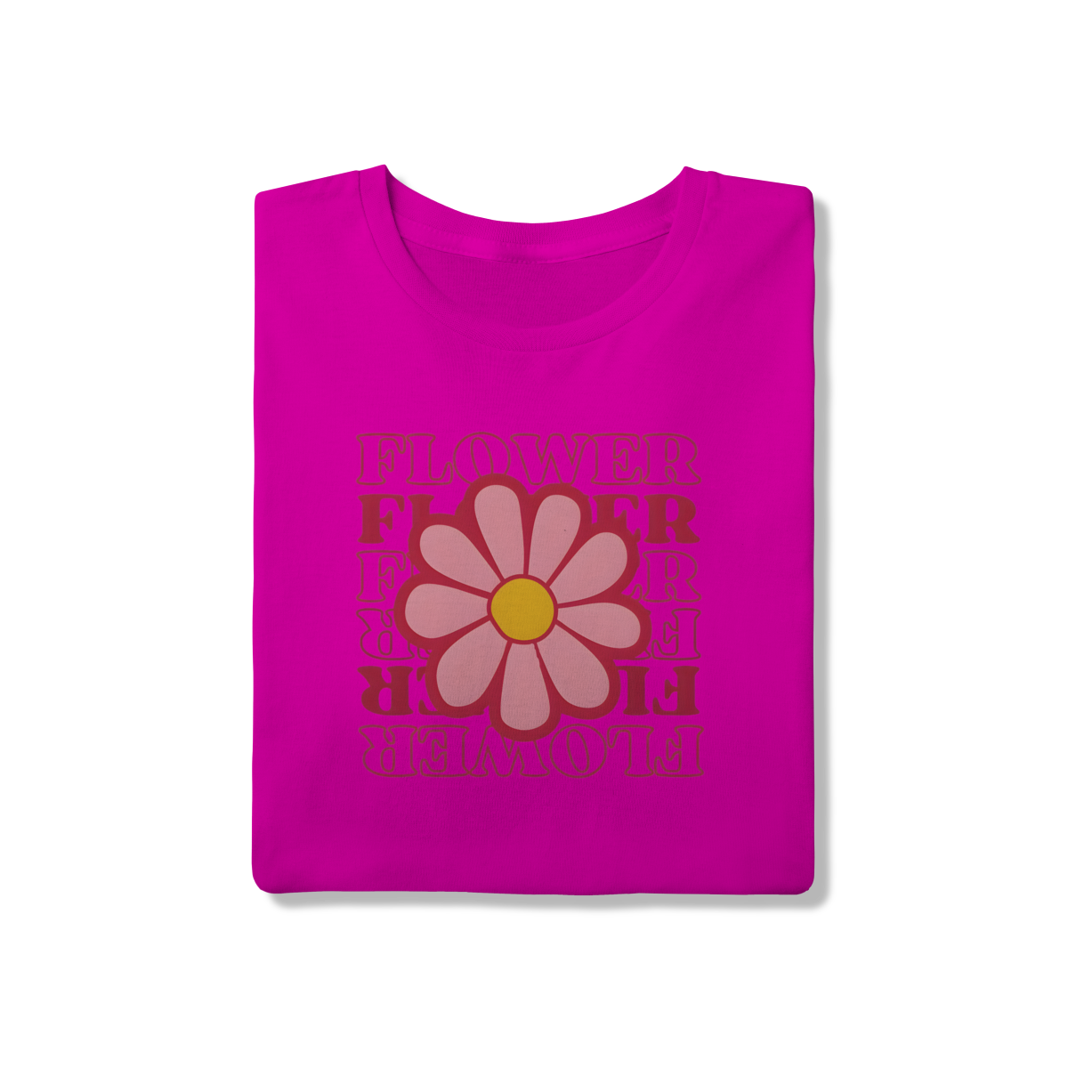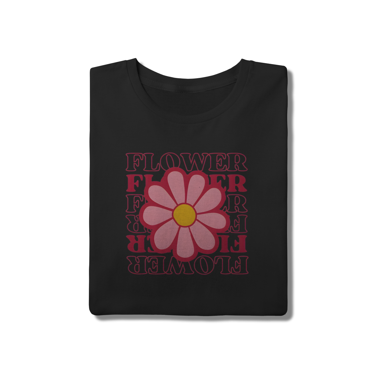 • Tipografia: A palavra "FLOWER" é repetida em um design empilhado e invertido, utilizando uma fonte retrô e cores quentes (vermelho/rosa choque), que adicionam profundidade e um toque vintage único.