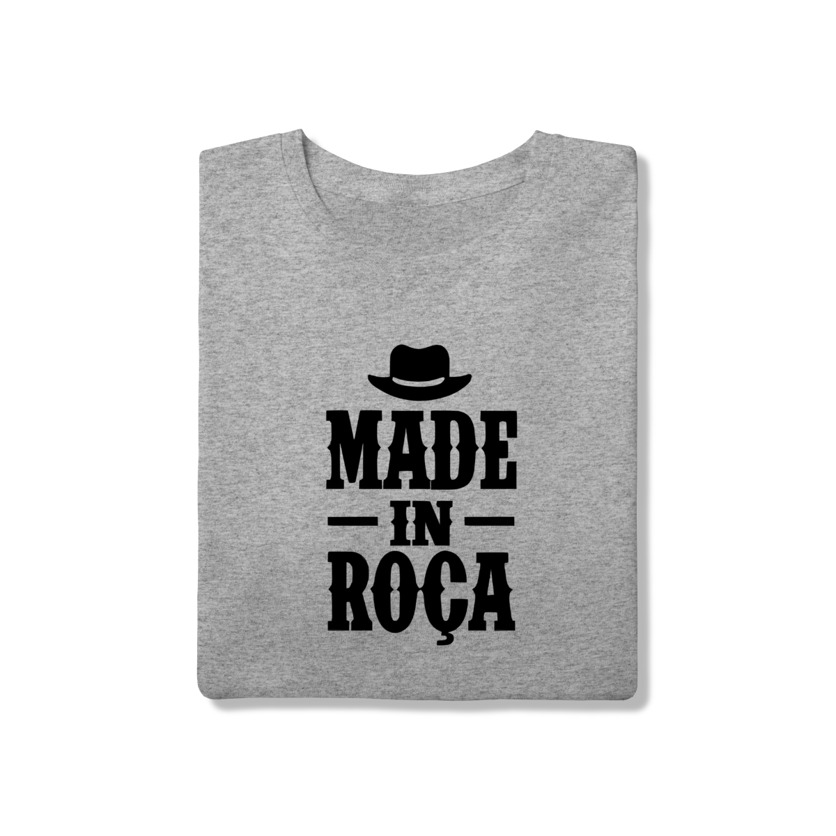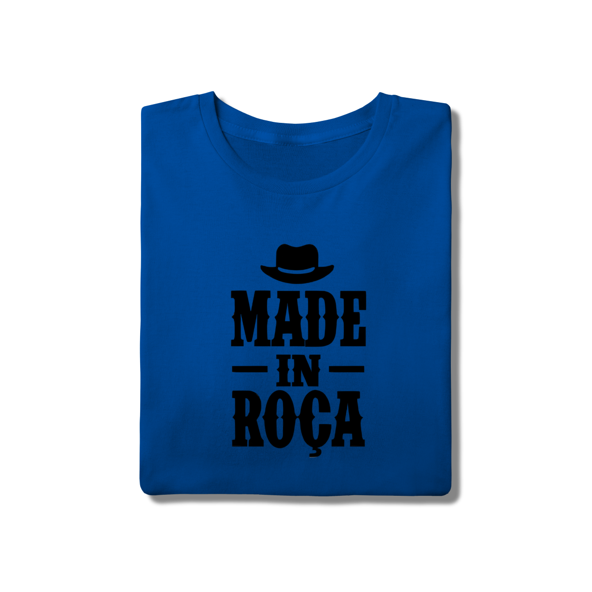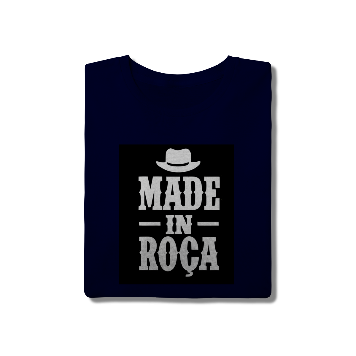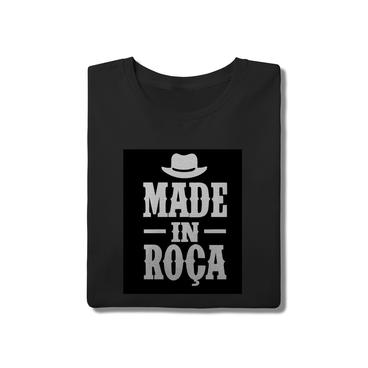 • Design Exclusivo: Apresenta a frase impactante "MADE IN ROÇA" em um estilo tipográfico robusto, coroada por um elegante ícone de chapéu country. Perfeito para quem vive o estilo de vida sertanejo com orgulho.