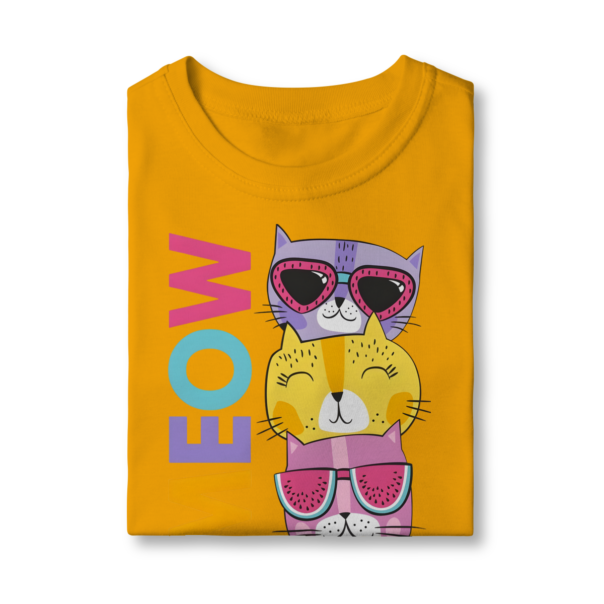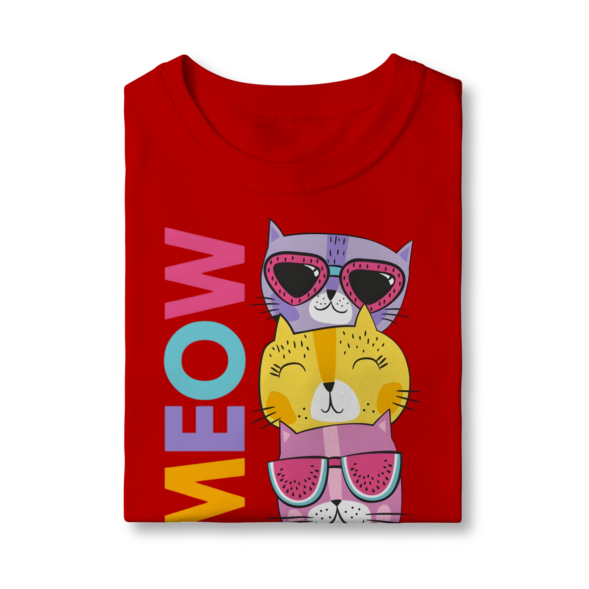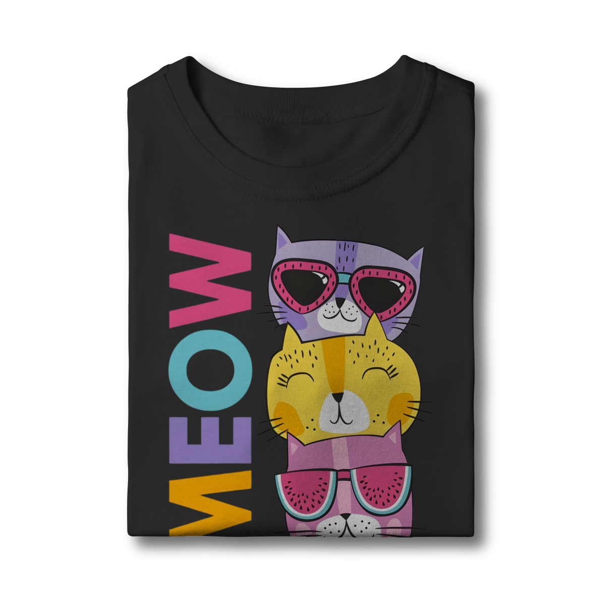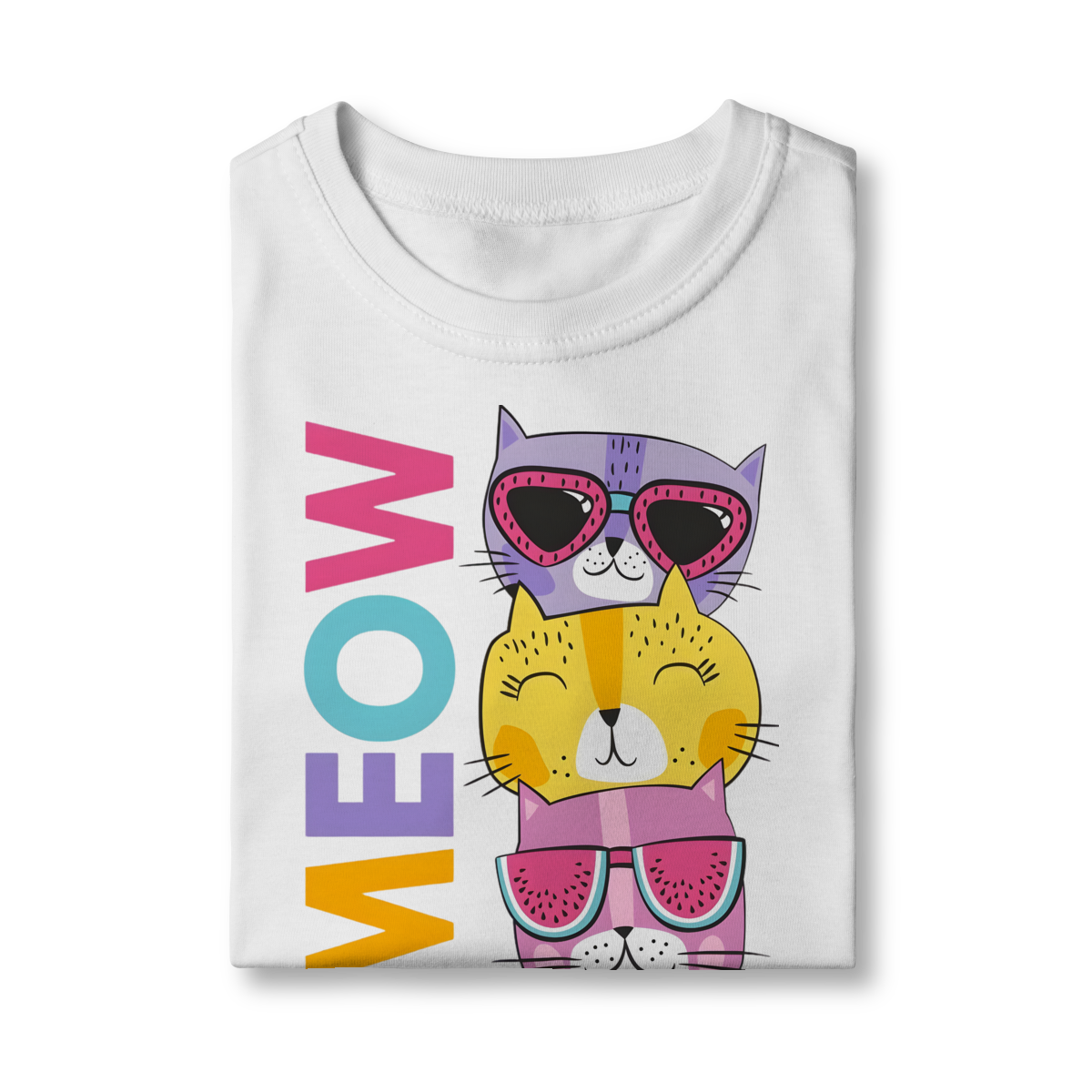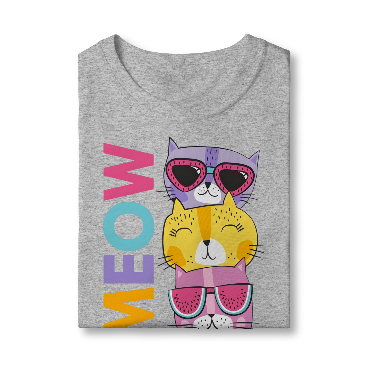 Descrição: Entre na onda da fofura e do estilo com a nossa camiseta "Pilha Felina Pop"! Esta peça rosa-bebê apresenta um design divertido e vibrante com três gatinhos empilhados, cada um usando óculos de sol super estilosos — de corações a estampa de melancia. Com a palavra "MEOW" em destaque e em cores alegres, esta camiseta é a escolha perfeita para quem ama gatos, cores pop e quer um visual alegre e descontraído. Feita em tecido macio e confortável, ela é ideal para qualquer ocasião casual. Mostre o seu amor felino!