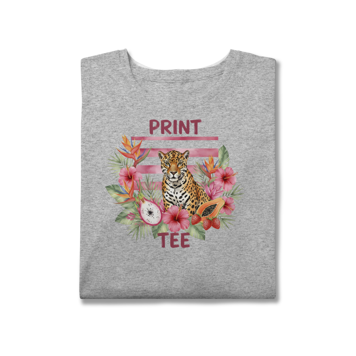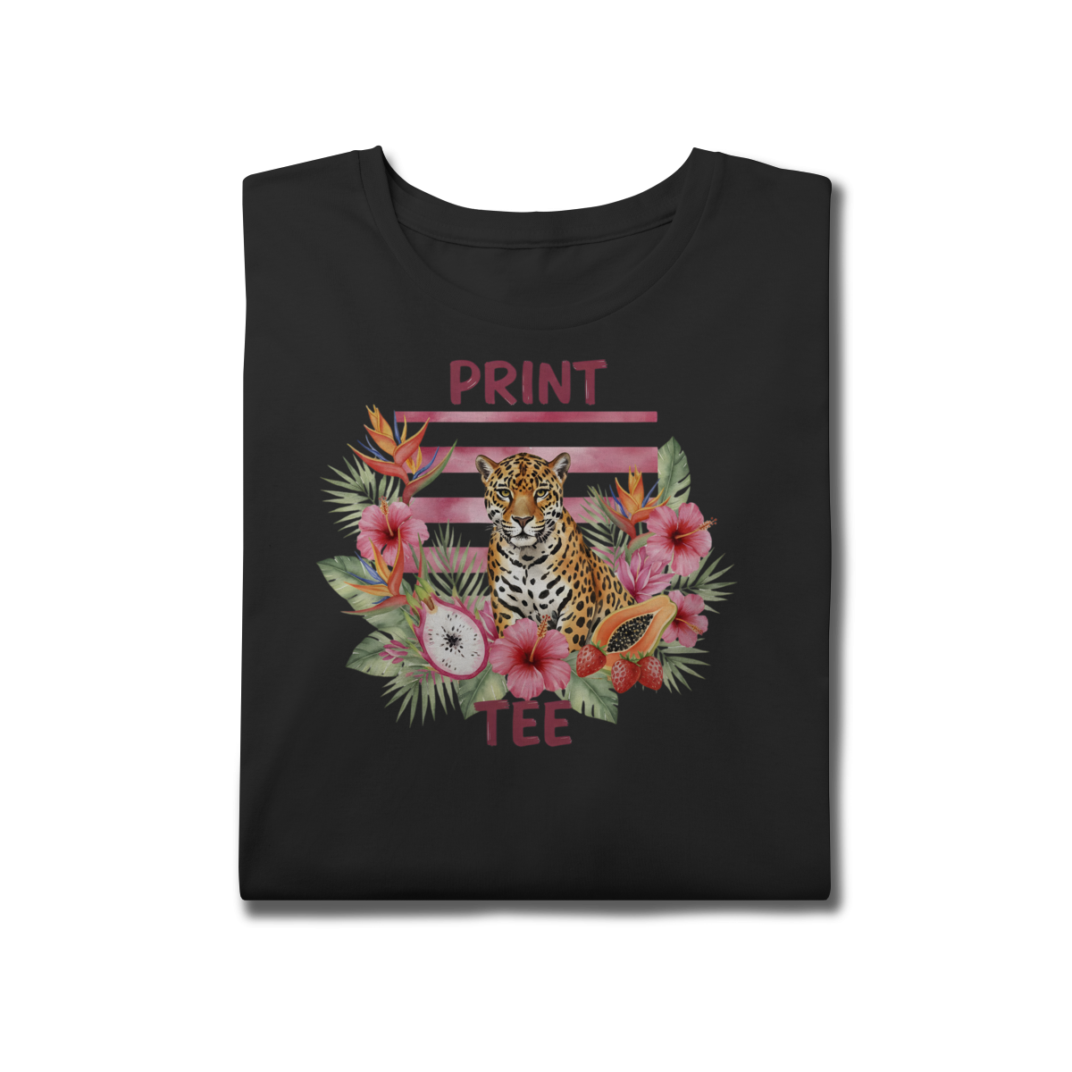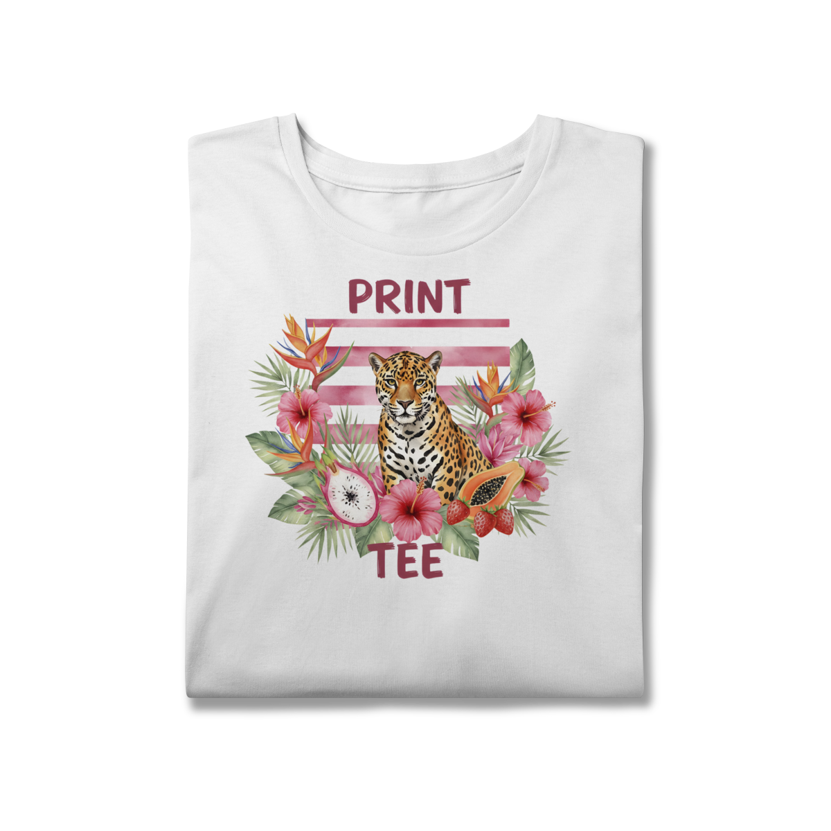 Sinta a energia da fauna brasileira com a nossa nova estampa exclusiva da Print Tee. Unindo a imponência da onça-pintada a um arranjo vibrante de flores tropicais, hibiscos e pitayas, esta peça é a definição de estilo autêntico e moderno.