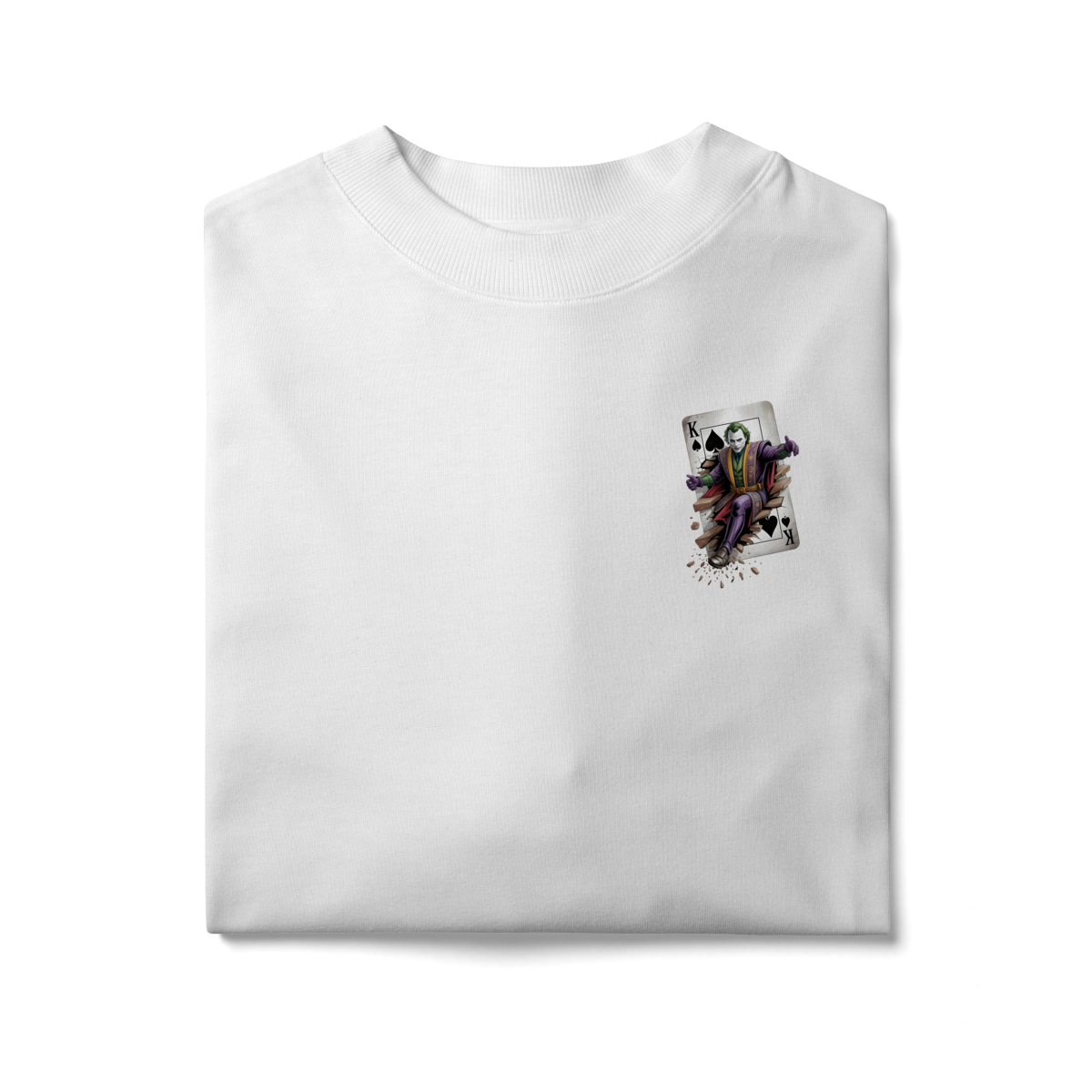 Seja a anarquia que a moda precisa com a nossa camiseta "Rei do Caos" Oversized. Esta peça não é apenas vestuário; é uma declaração de irreverência e estilo. Perfeita para quem entende que, no jogo da vida, às vezes o Coringa é quem realmente dita as regras.