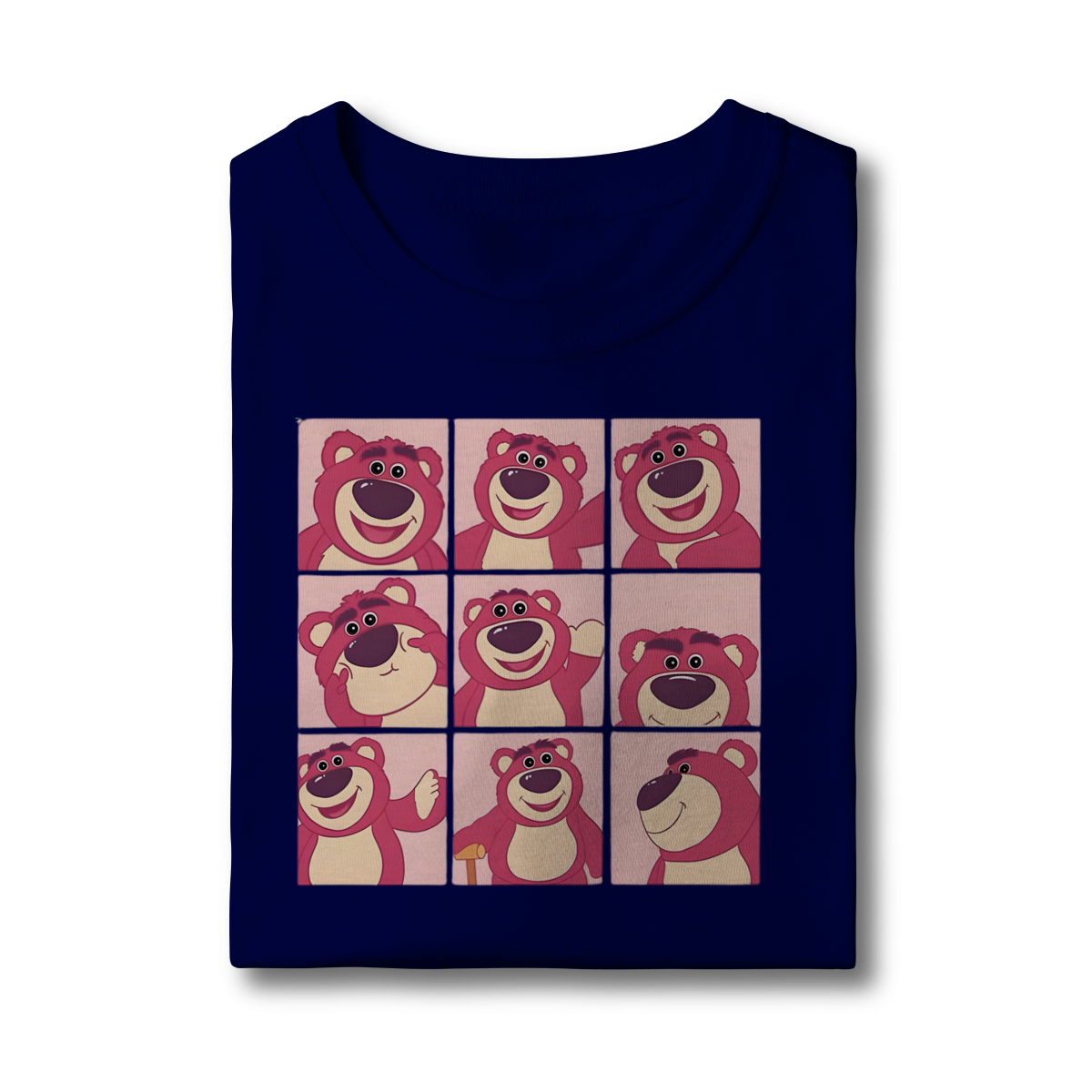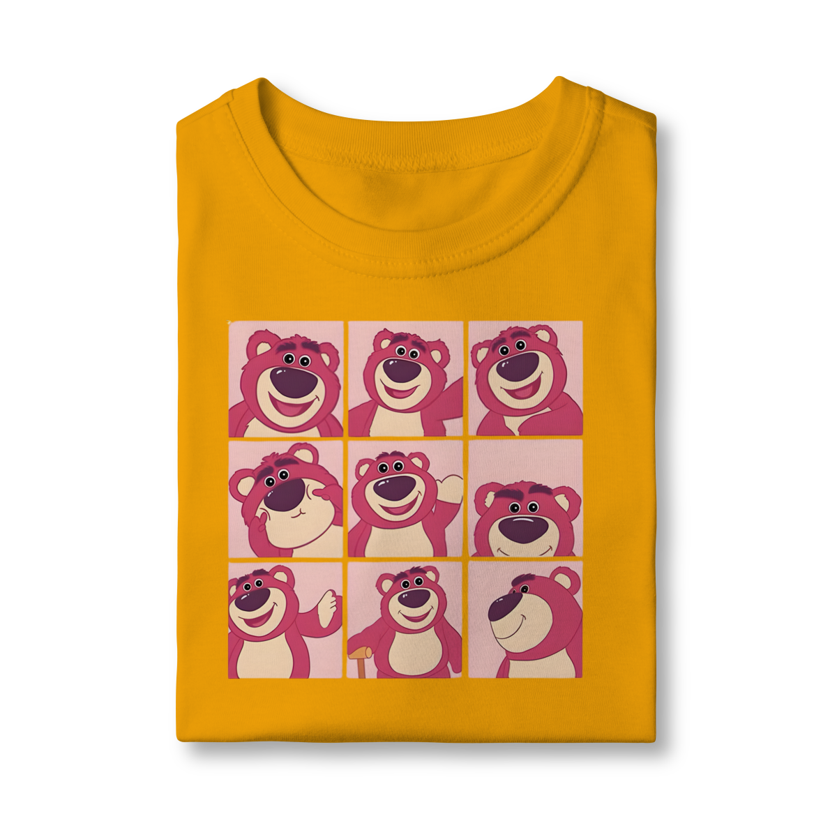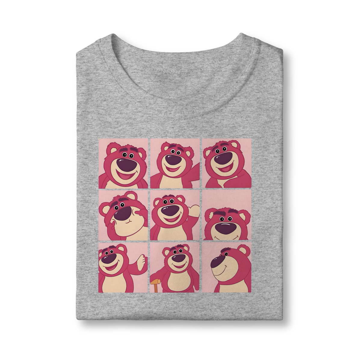 • Estampa: Grade 3x3 de expressões do Lotso Huggin' Bear.