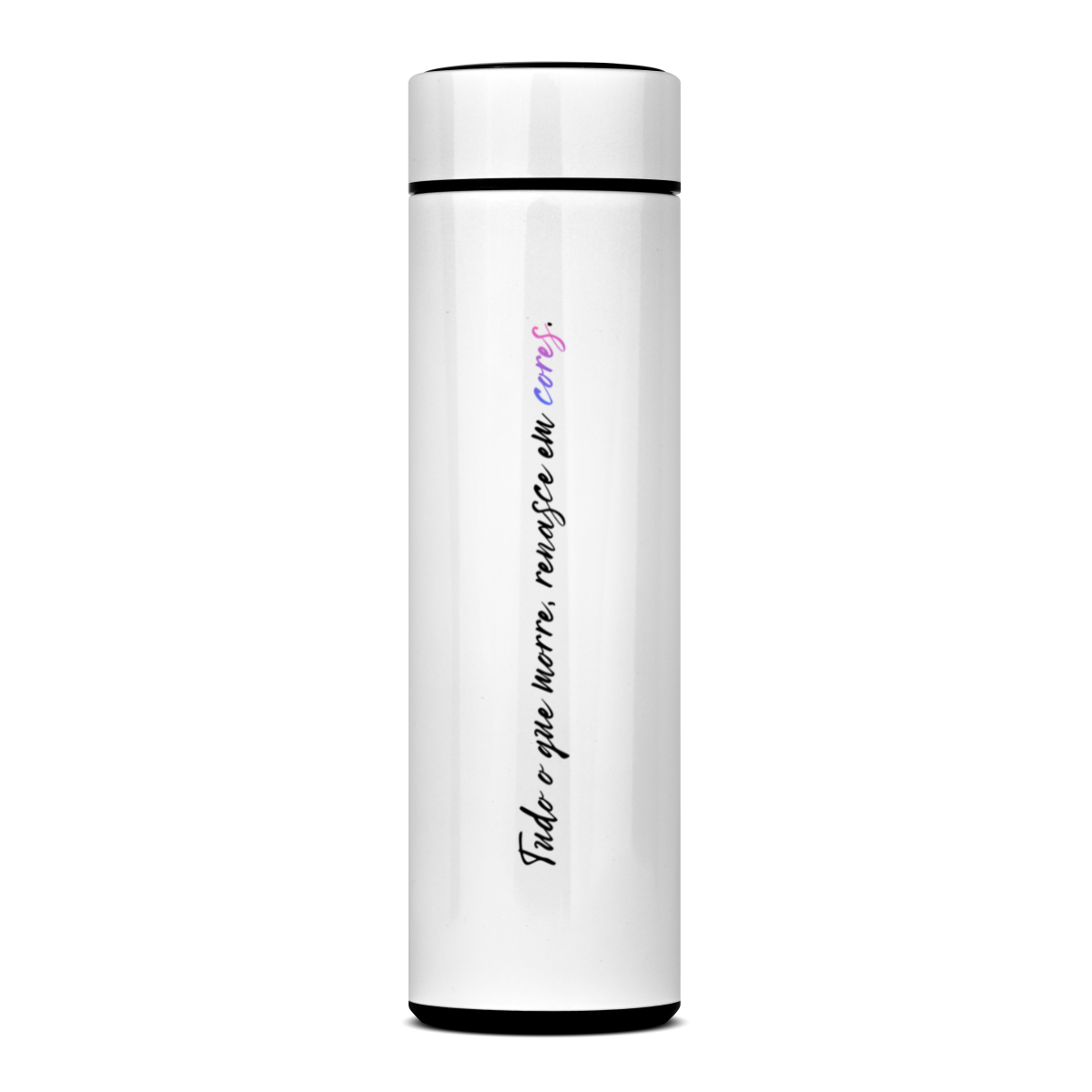 Inspirada no ciclo eterno da natureza e na beleza da transformação, a Garrafa Térmica Renascer traz a poderosa frase: "Tudo o que morre, renasce em cores." Com uma estampa exclusiva que funde o misticismo do crânio anatômico com a leveza de tons pastéis e elementos cósmicos, esta garrafa é mais do que um acessório — é um lembrete diário de que cada fim é apenas um novo começo cheio de cor.