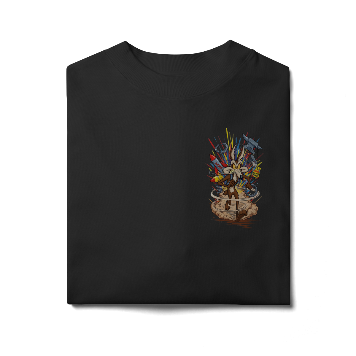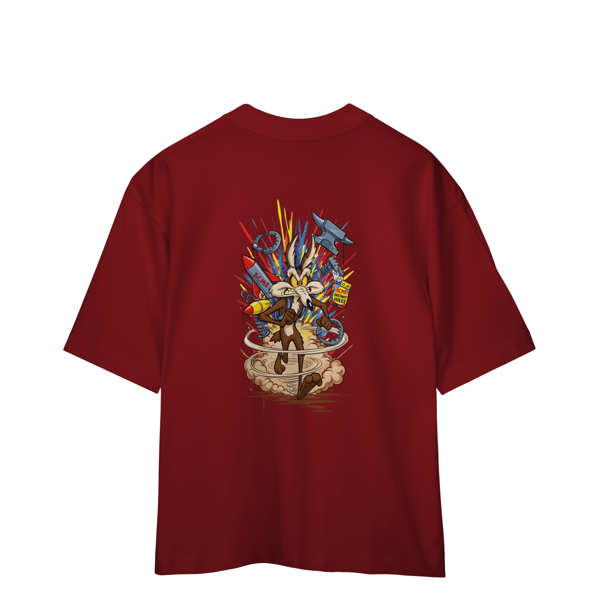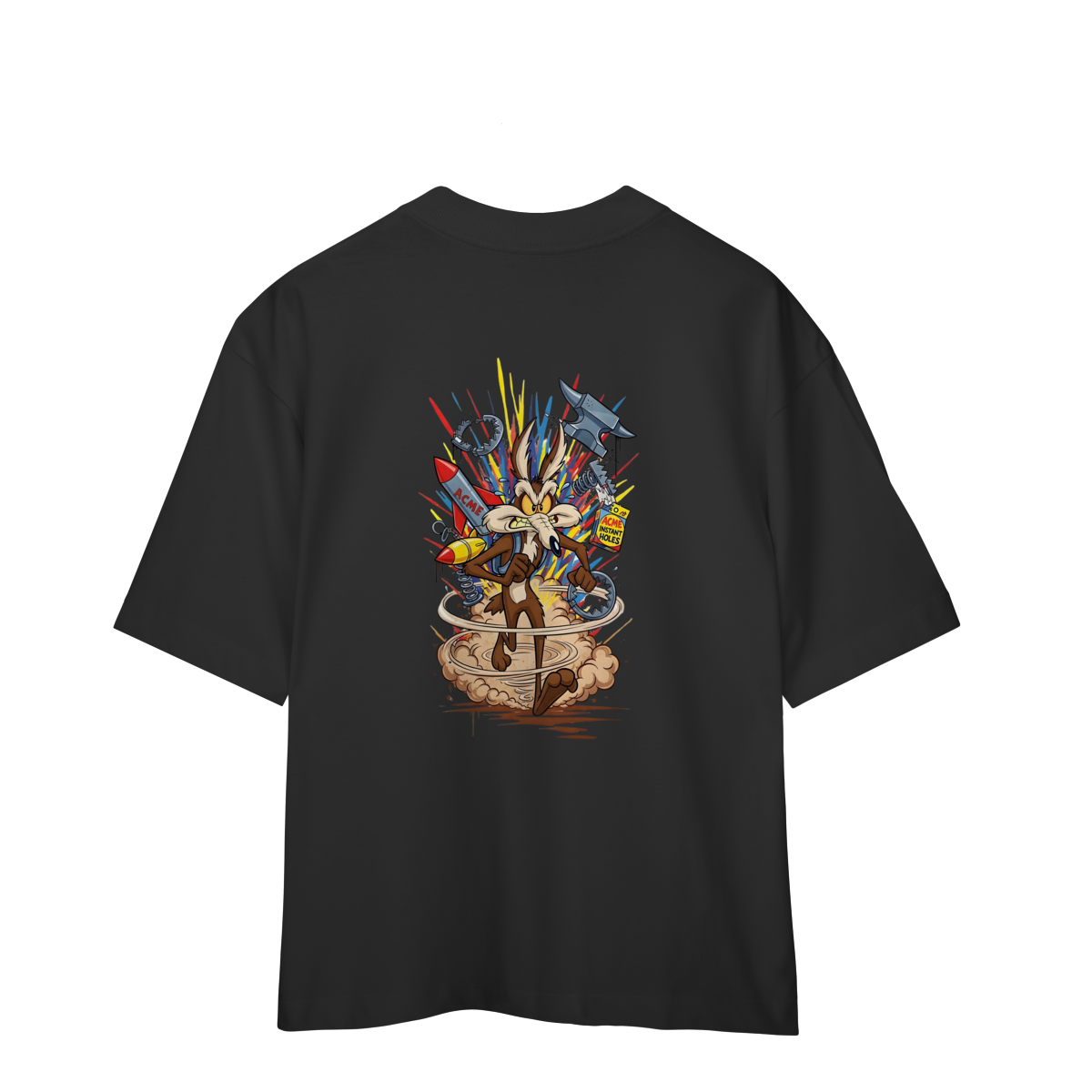 Este design vibrante e detalhado captura Wile E. Coyote em um de seus momentos mais dinâmicos: o milésimo de segundo antes (ou durante!) mais uma de suas invenções ACME falhar gloriosamente.
