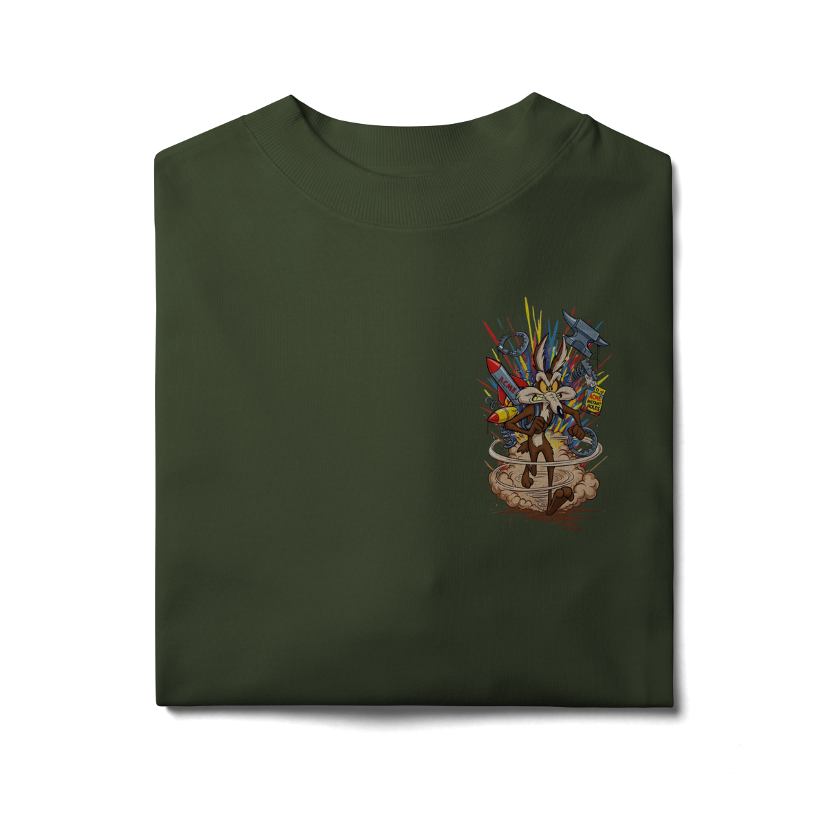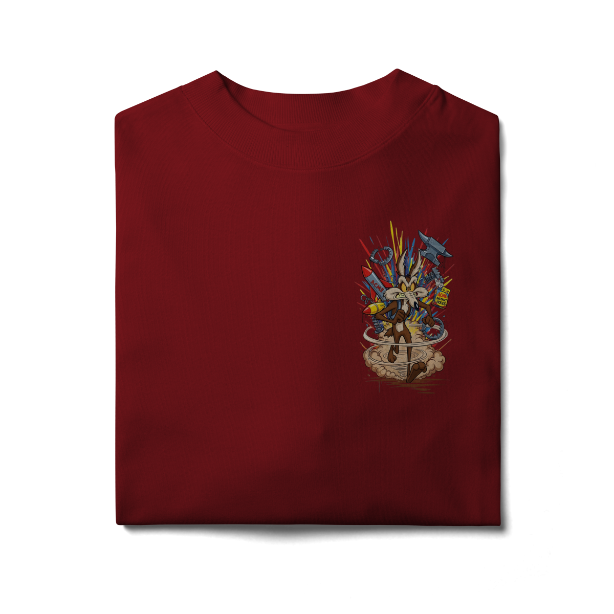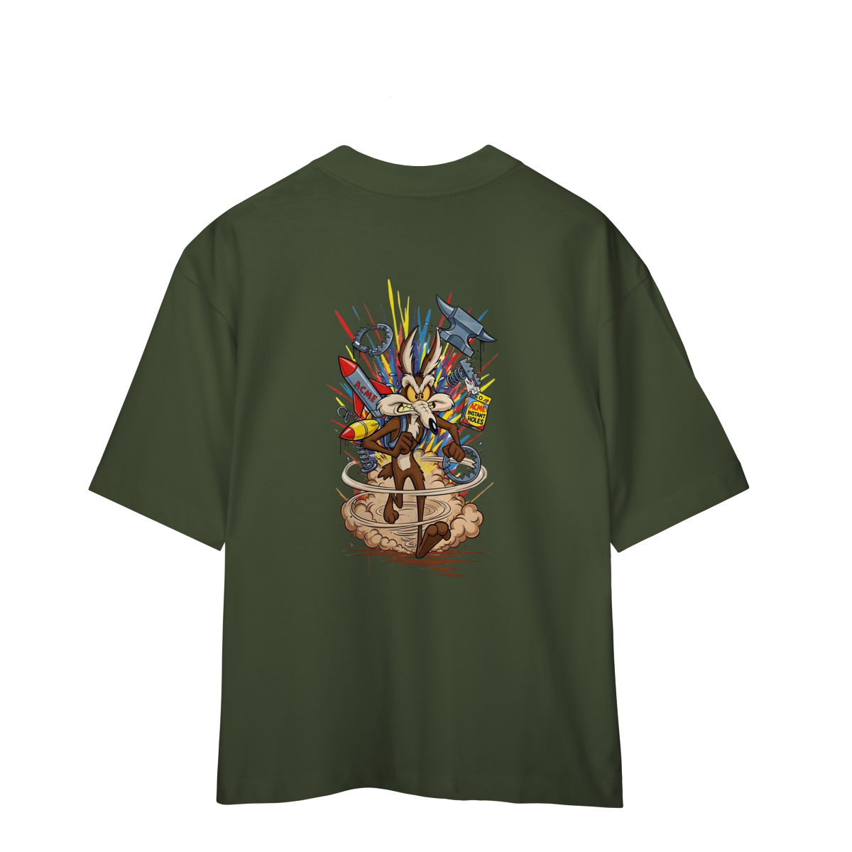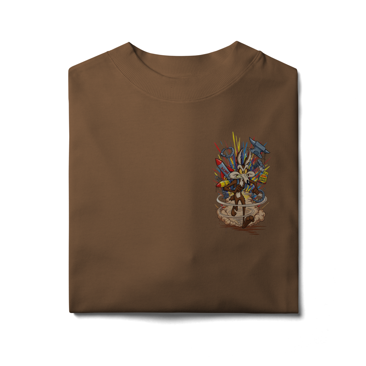 Este design vibrante e detalhado captura Wile E. Coyote em um de seus momentos mais dinâmicos: o milésimo de segundo antes (ou durante!) mais uma de suas invenções ACME falhar gloriosamente.