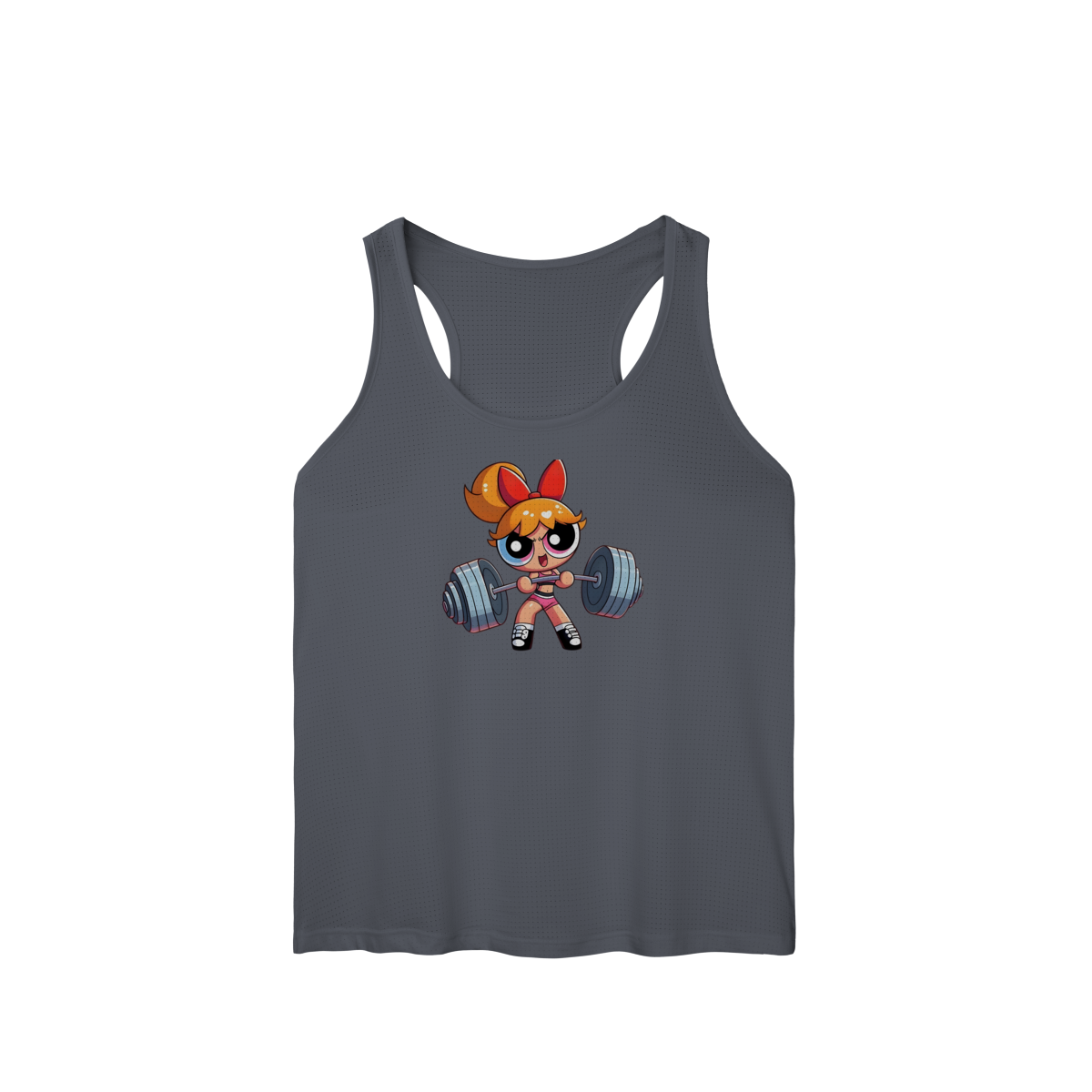 Descrição: Quem disse que açúcar e tempero não combinam com ferro? A Regata Blossom Iron traz a líder das Meninas Superpoderosas em uma versão "bodybuilder" para inspirar o seu treino de braço. Confeccionada em tecido tecnológico de alta absorção e na cor azul marinho clássica, ela oferece a mobilidade necessária para você salvar o dia (ou bater seu recorde pessoal) com muito estilo e força.