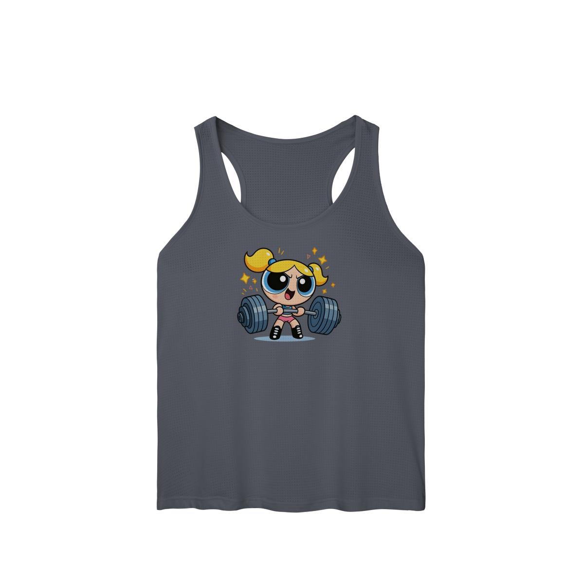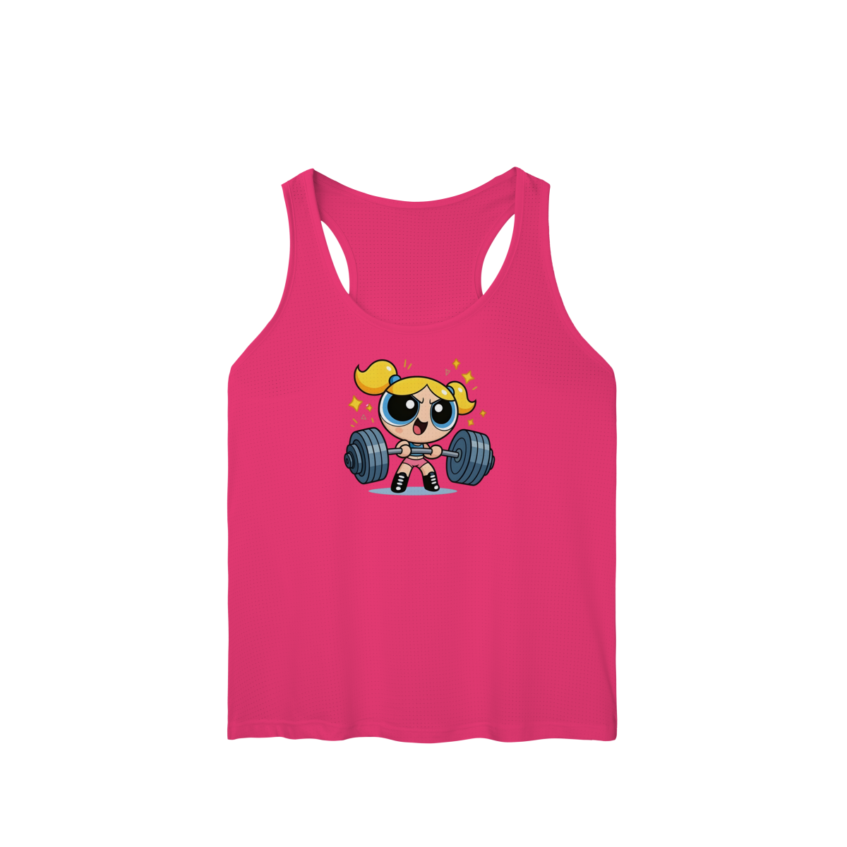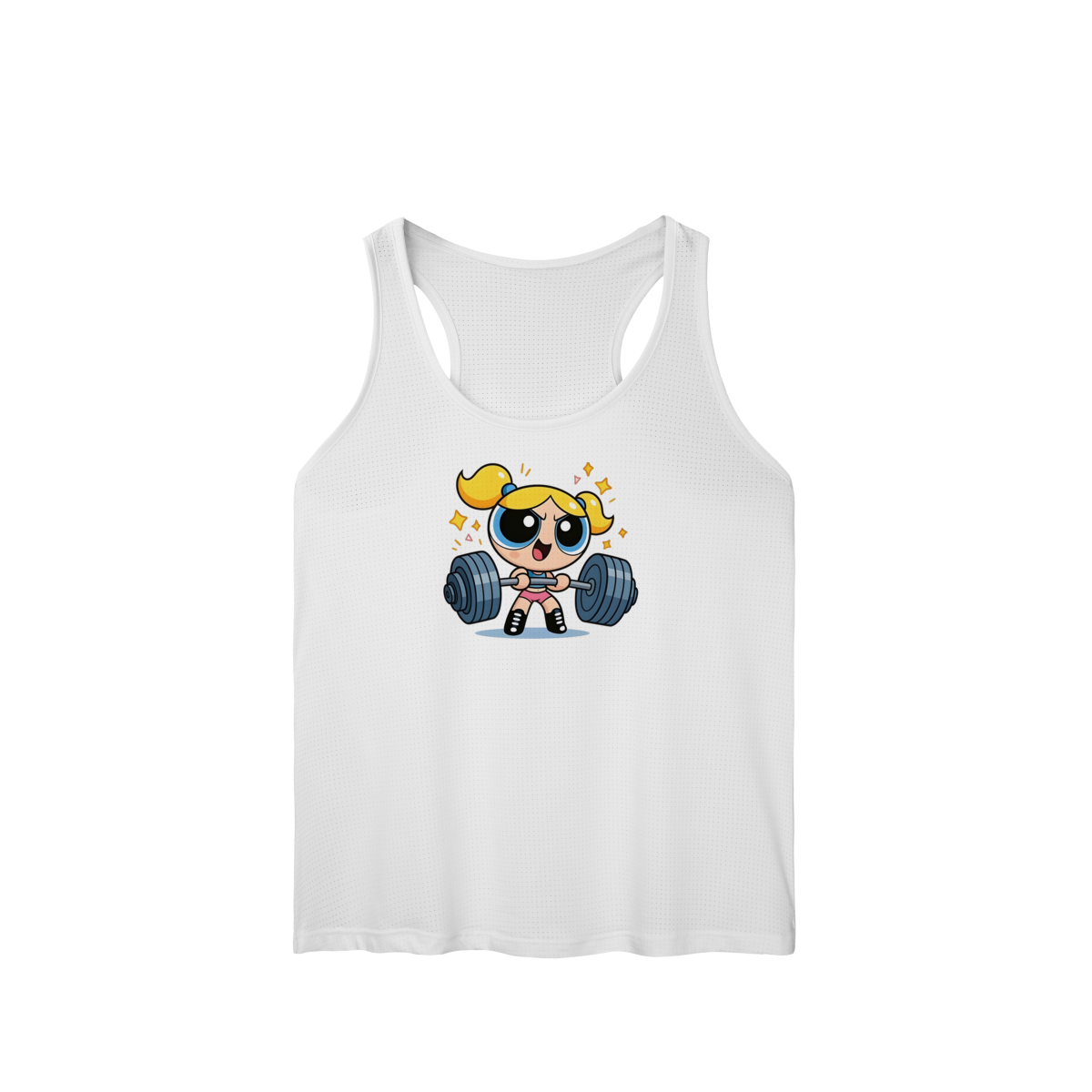 Descrição: Quem disse que a doçura não pode vir acompanhada de alguns quilos de anilha? Esta regata traz a mistura perfeita de nostalgia e determinação. Feita para quem encara o treino de perna com a mesma energia de quem vai salvar o mundo antes de dormir.