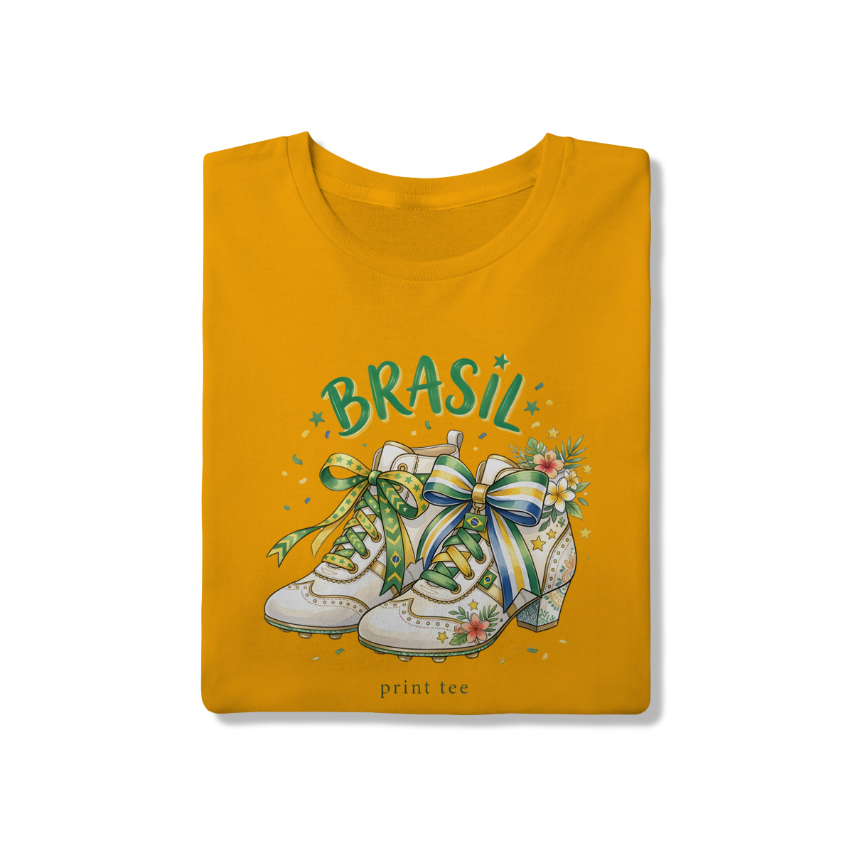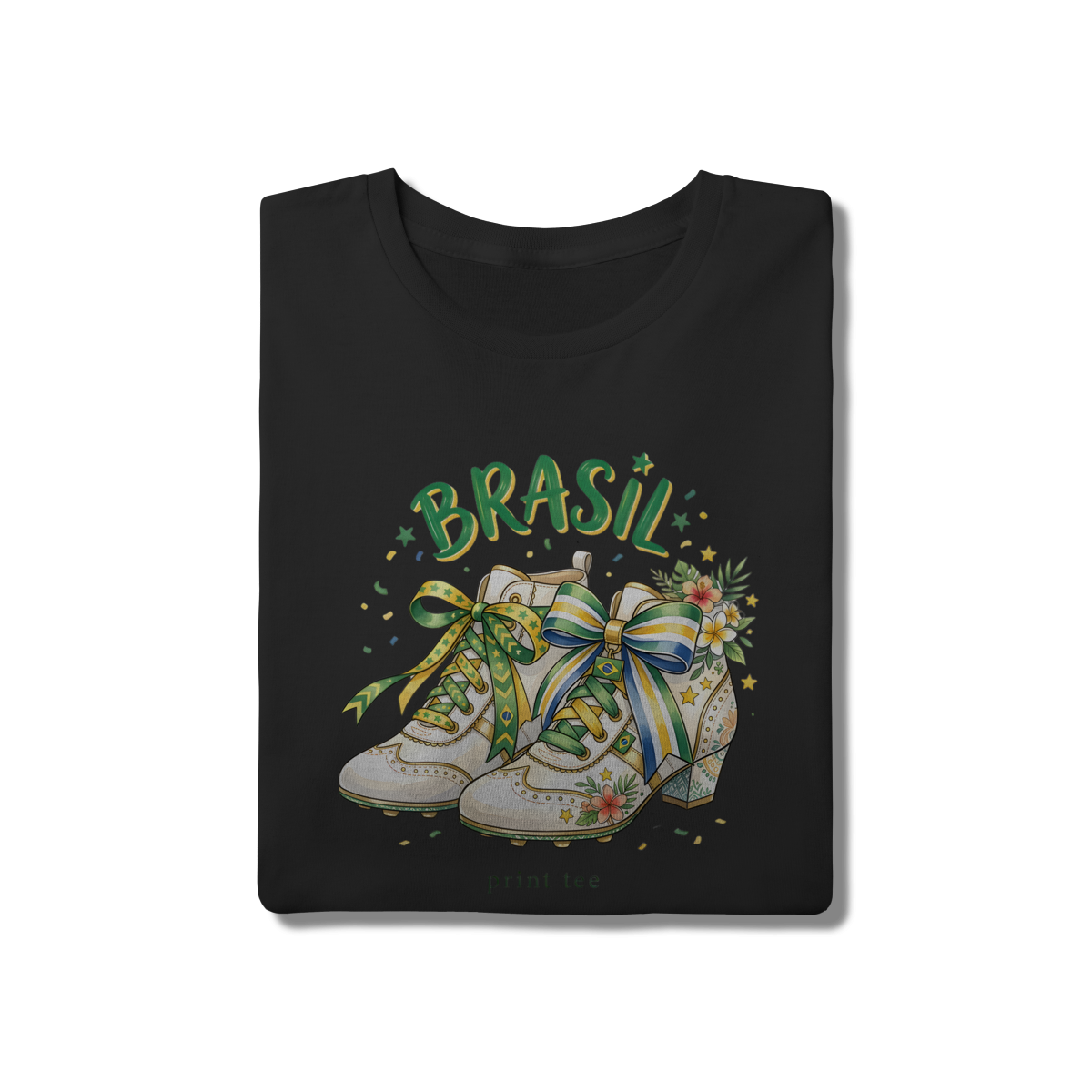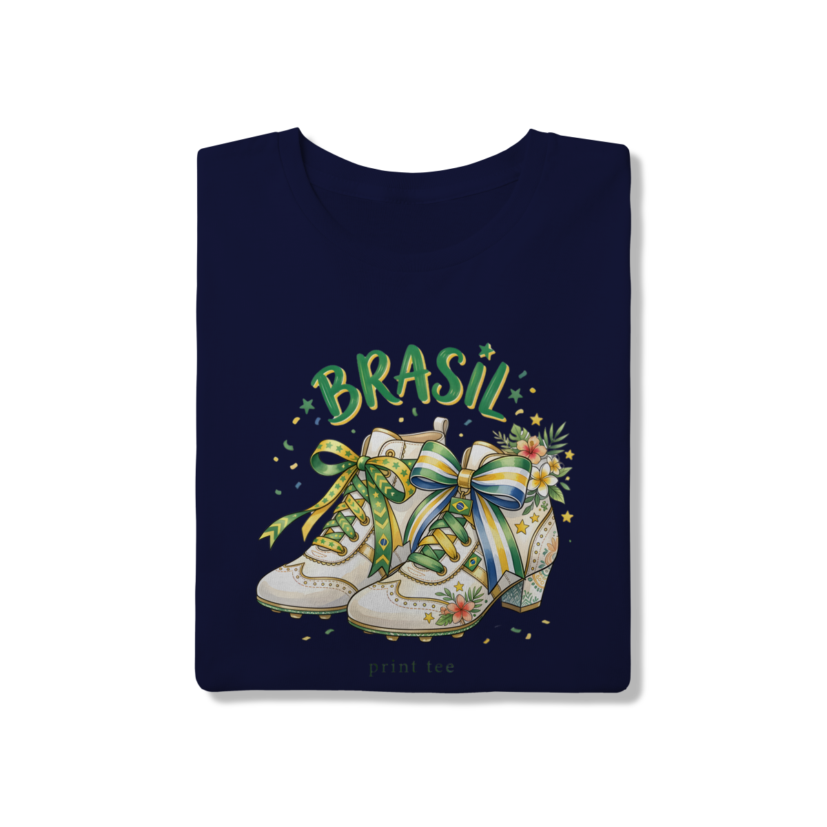 A nossa t-shirt Brasil Vintage Blossom foi desenhada para a torcedora que não abre mão da sofisticação. Com uma ilustração exclusiva em estilo aquarela, a peça une a paixão pelo futebol — representada pelas clássicas chuteiras de salto — à delicadeza das flores e laços acetinados nas cores da nossa bandeira.