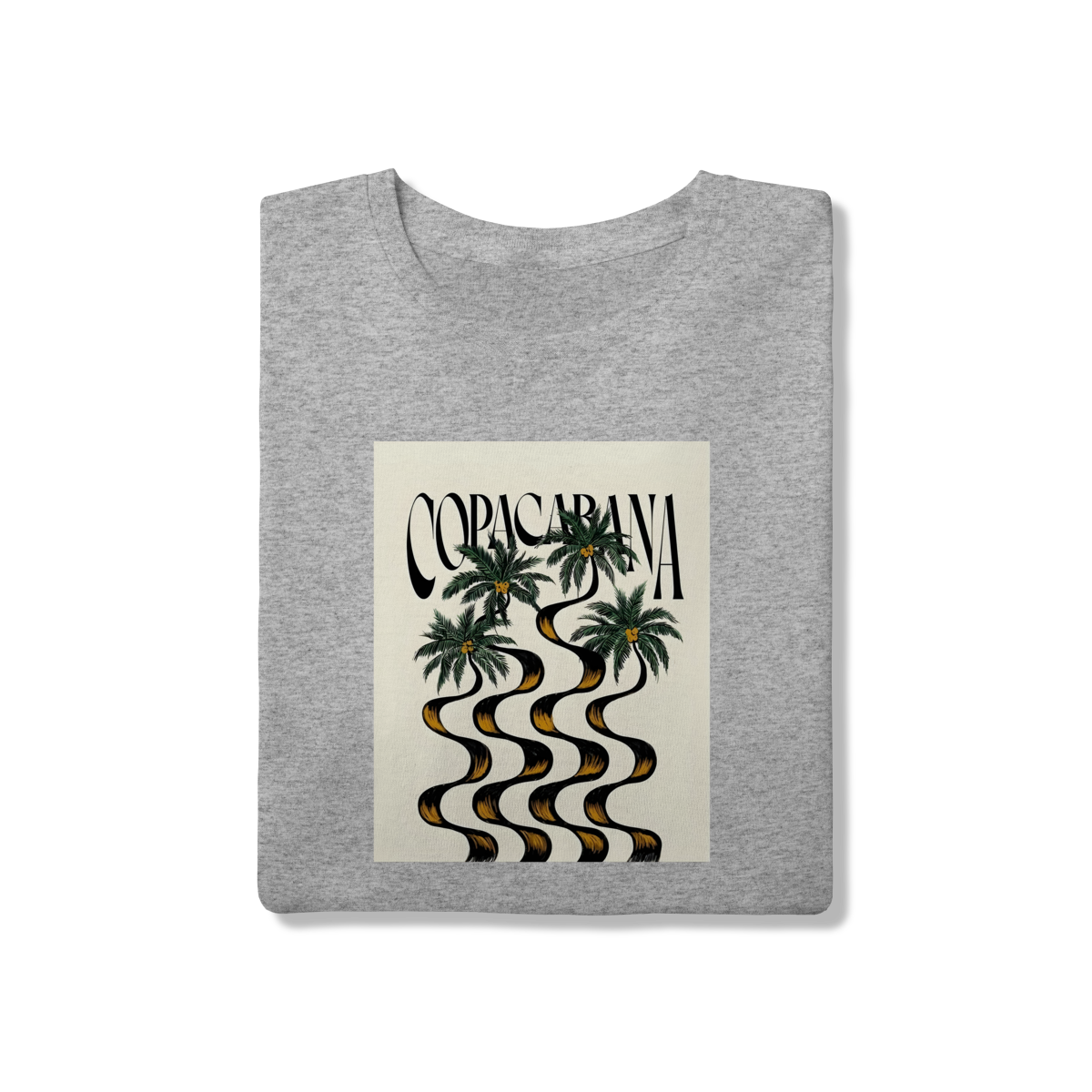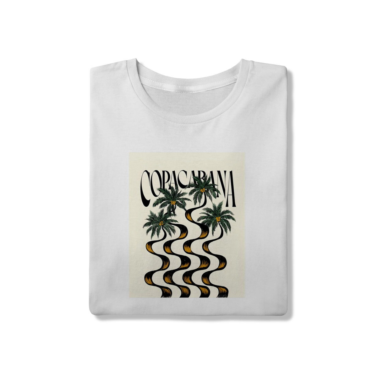 Redescubra o ícone carioca sob uma nova perspectiva. Esta camiseta traz uma interpretação artística e fluida do calçadão de Copacabana, onde as ondas de pedra se fundem aos troncos das palmeiras em um design hipnotizante. Perfeita para quem busca um visual urbano com a alma do litoral brasileiro.