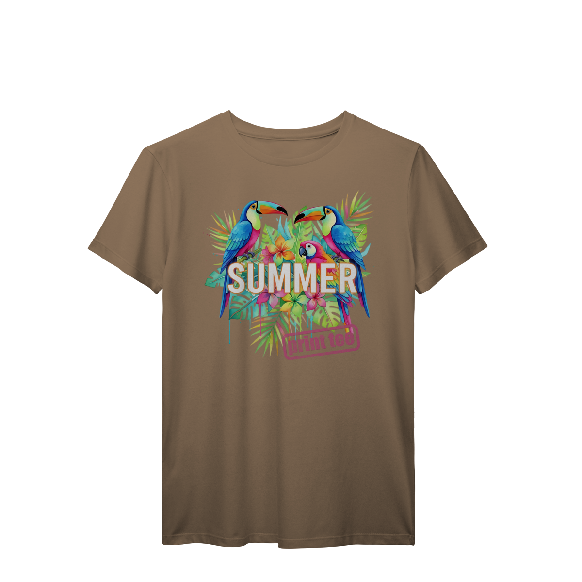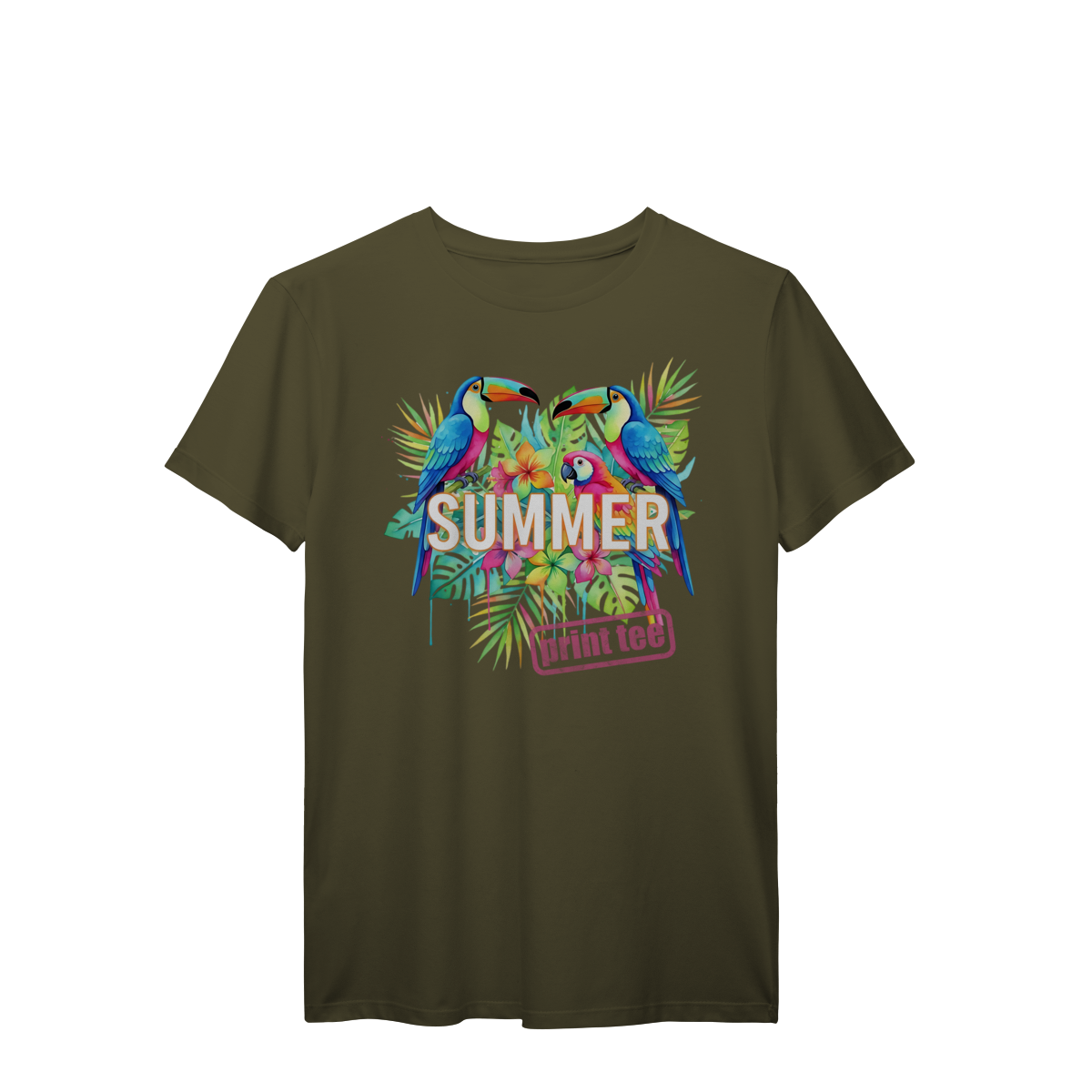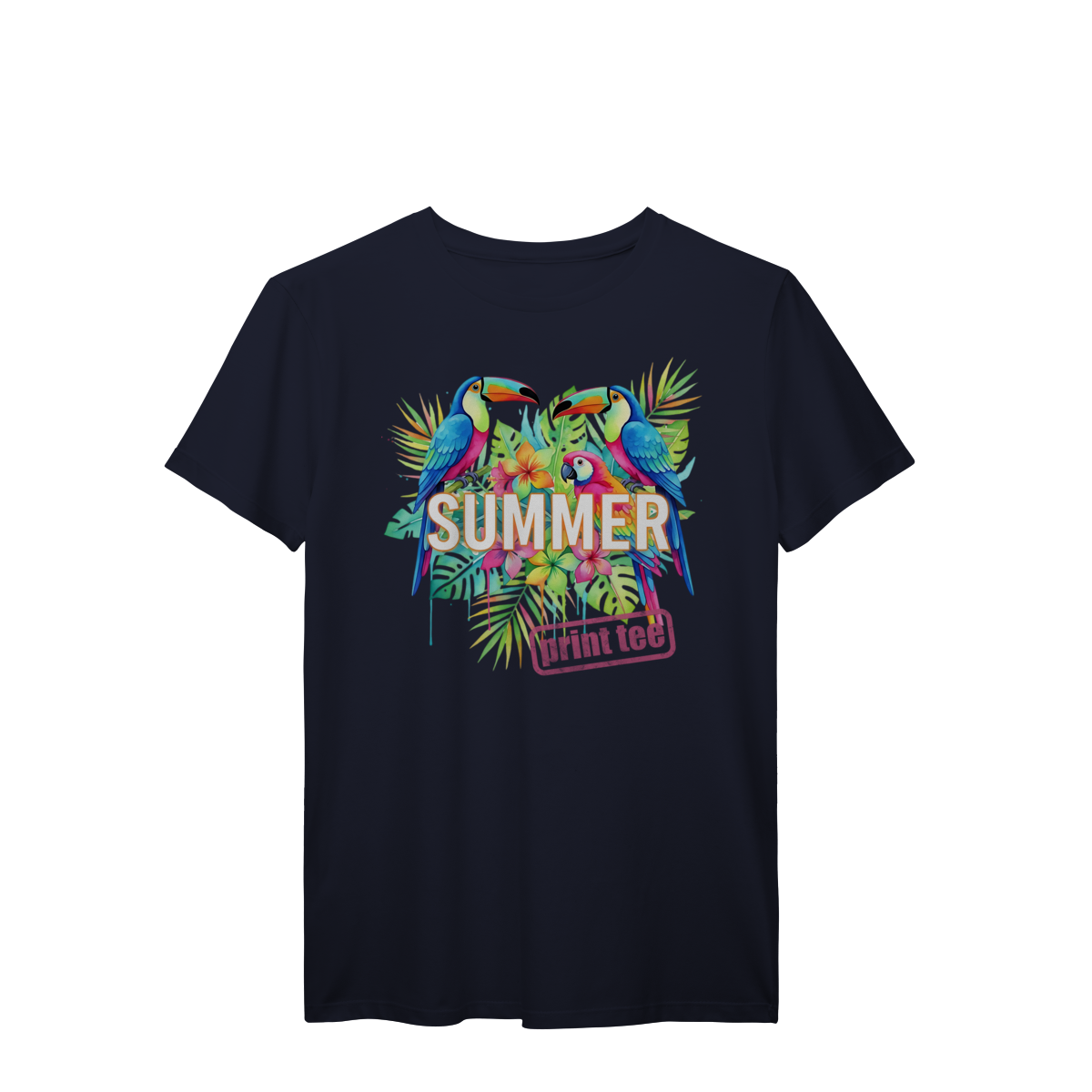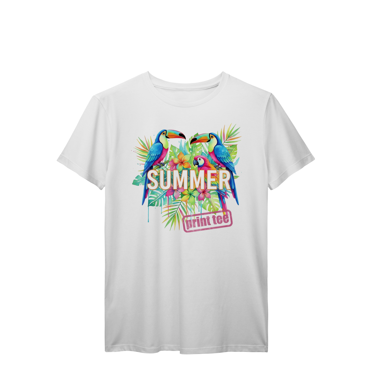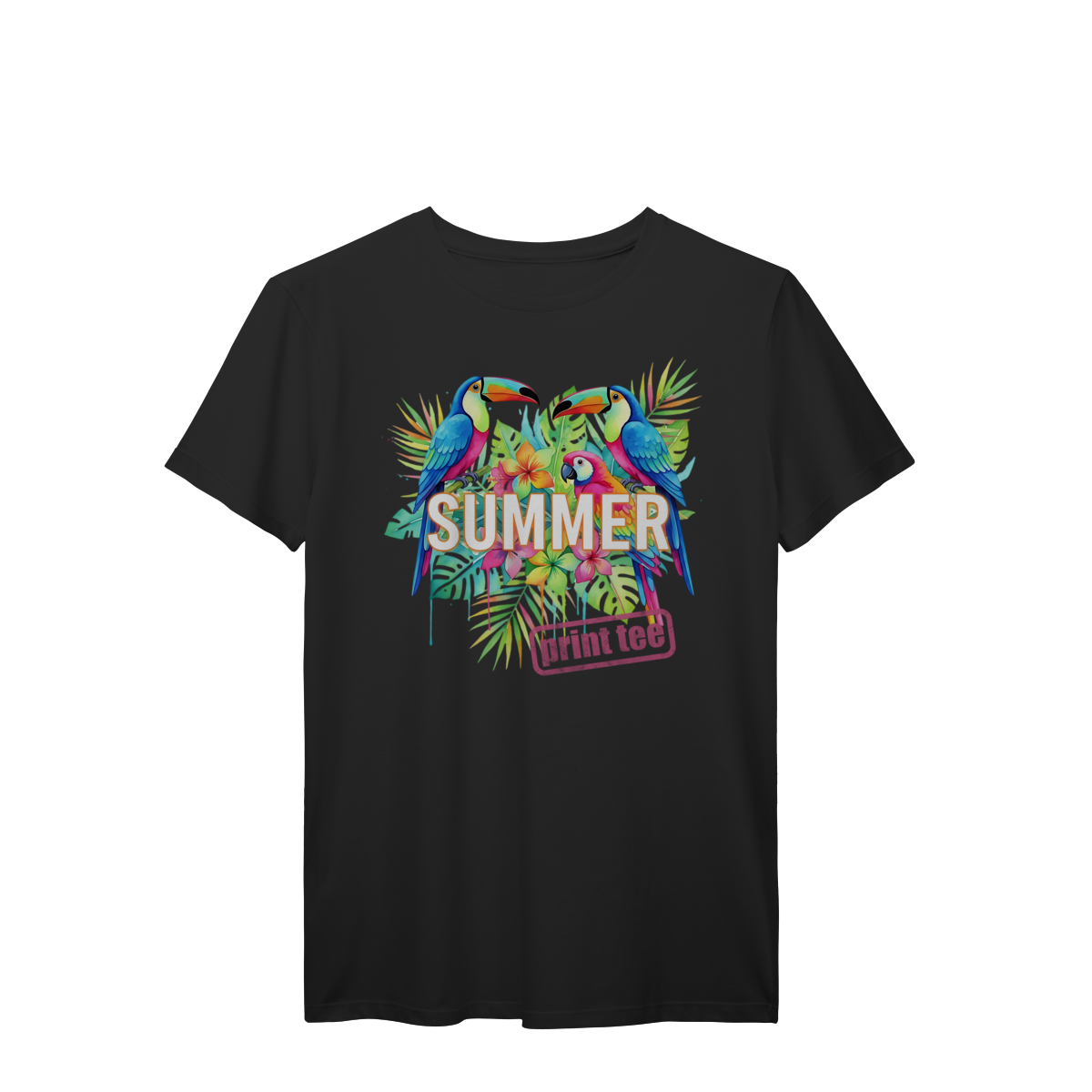 Camiseta Tropical Summer – Coleção Print Tee Sinta a energia do verão com a nossa t-shirt exclusiva. Com uma estampa centralizada de tucanos e folhagens tropicais em cores vivas, esta peça une o frescor da natureza ao estilo urbano. Confeccionada em algodão de alta qualidade, ela oferece o toque macio e a durabilidade que você já conhece da Print Tee. Ideal para quem não abre mão de estilo e conforto em qualquer ocasião.