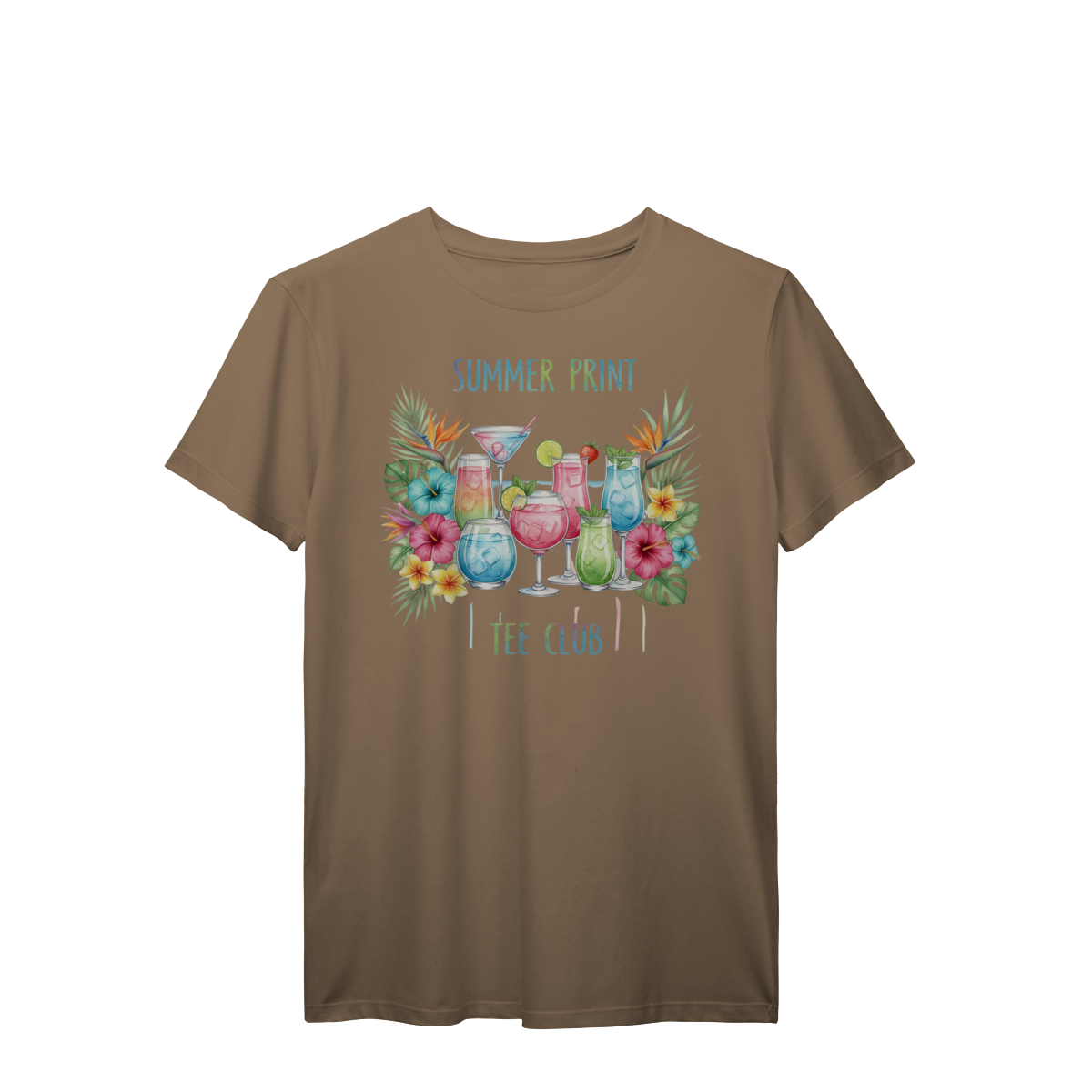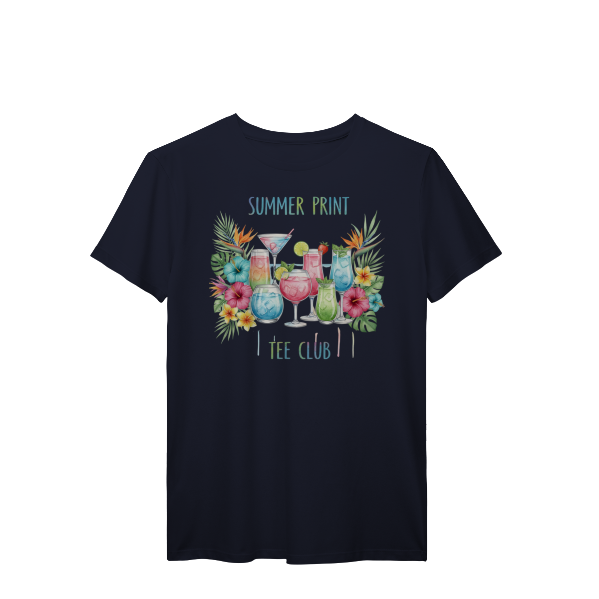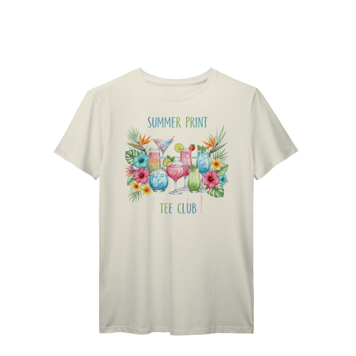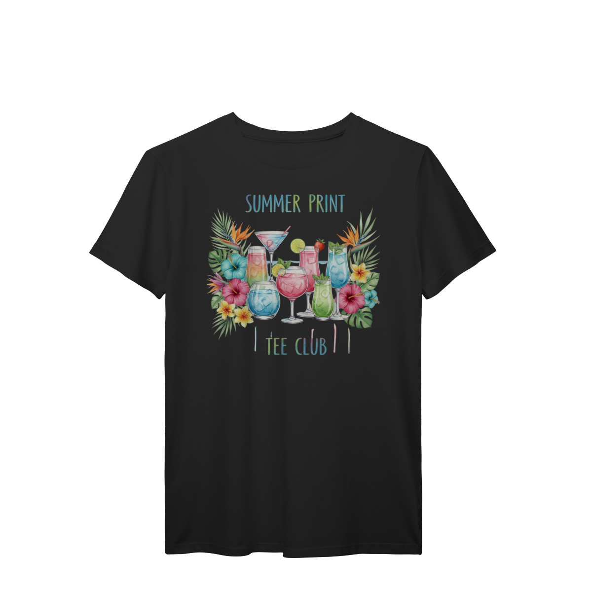 Descrição: Deixe o verão te guiar com a nossa T-shirt "Summer Print". Com uma ilustração exclusiva em aquarela, esta peça une o frescor dos drinks tropicais à elegância das flores exóticas. Feita para quem não abre mão do conforto, mas quer carregar a energia das férias no visual do dia a dia.