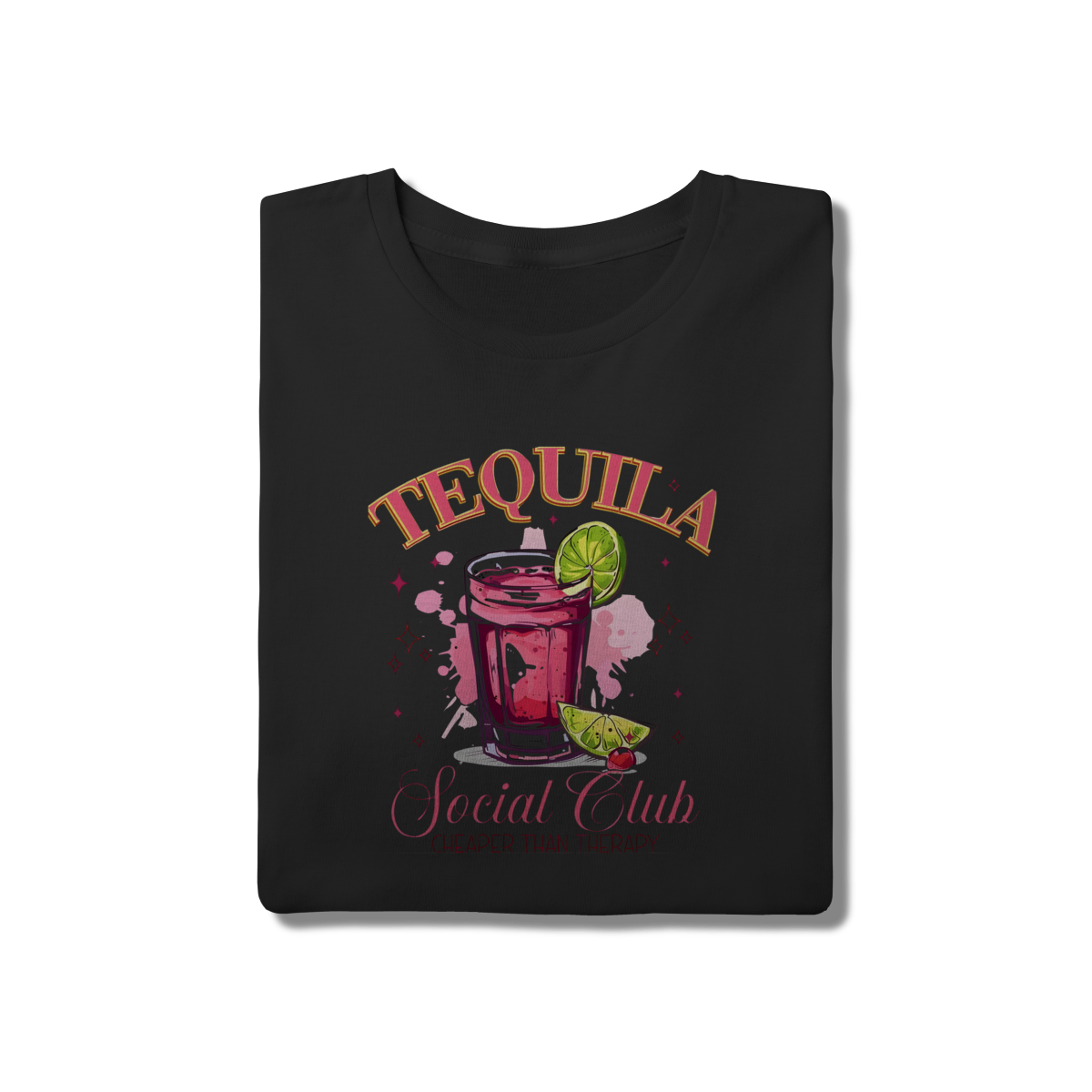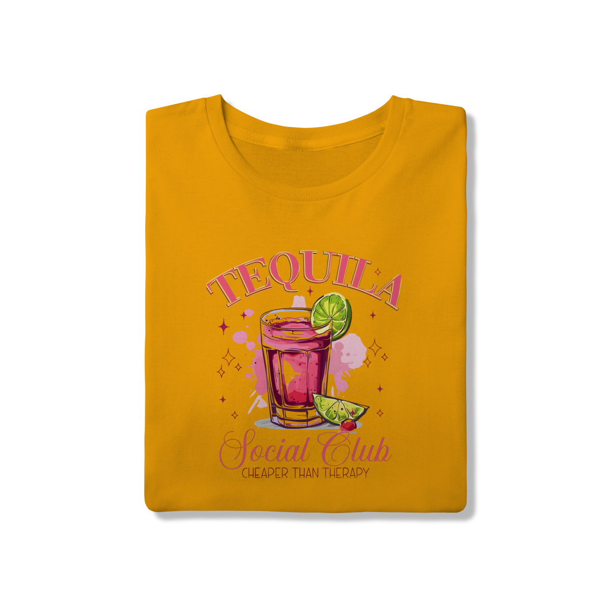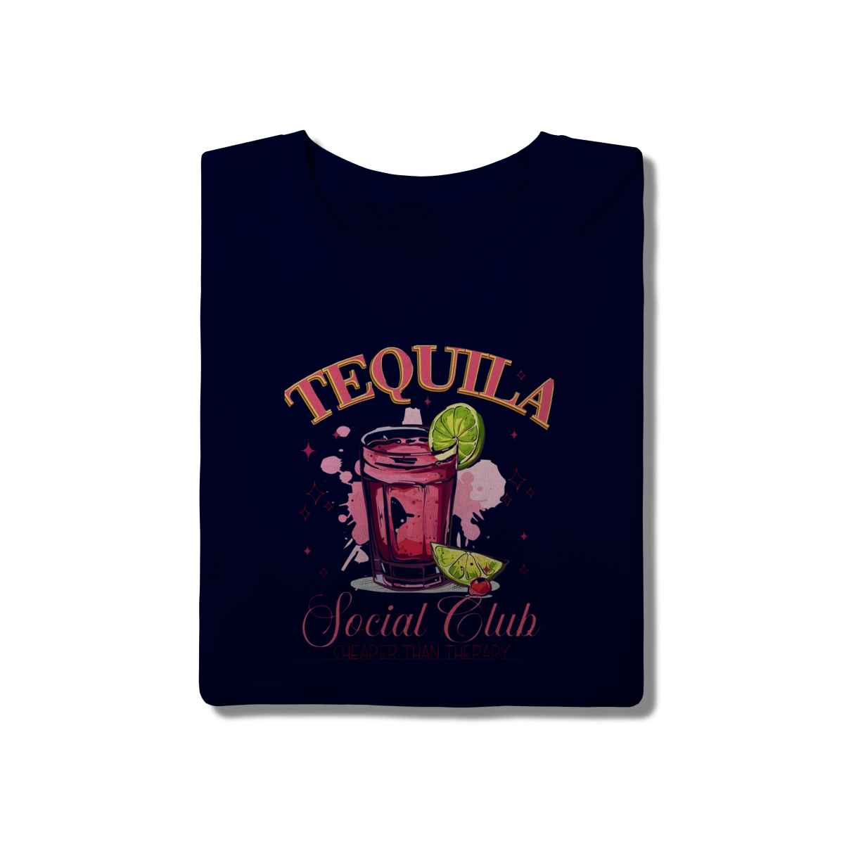 Celebre os bons momentos e as risadas com a camiseta "Tequila Social Club: Cheaper Than Therapy".